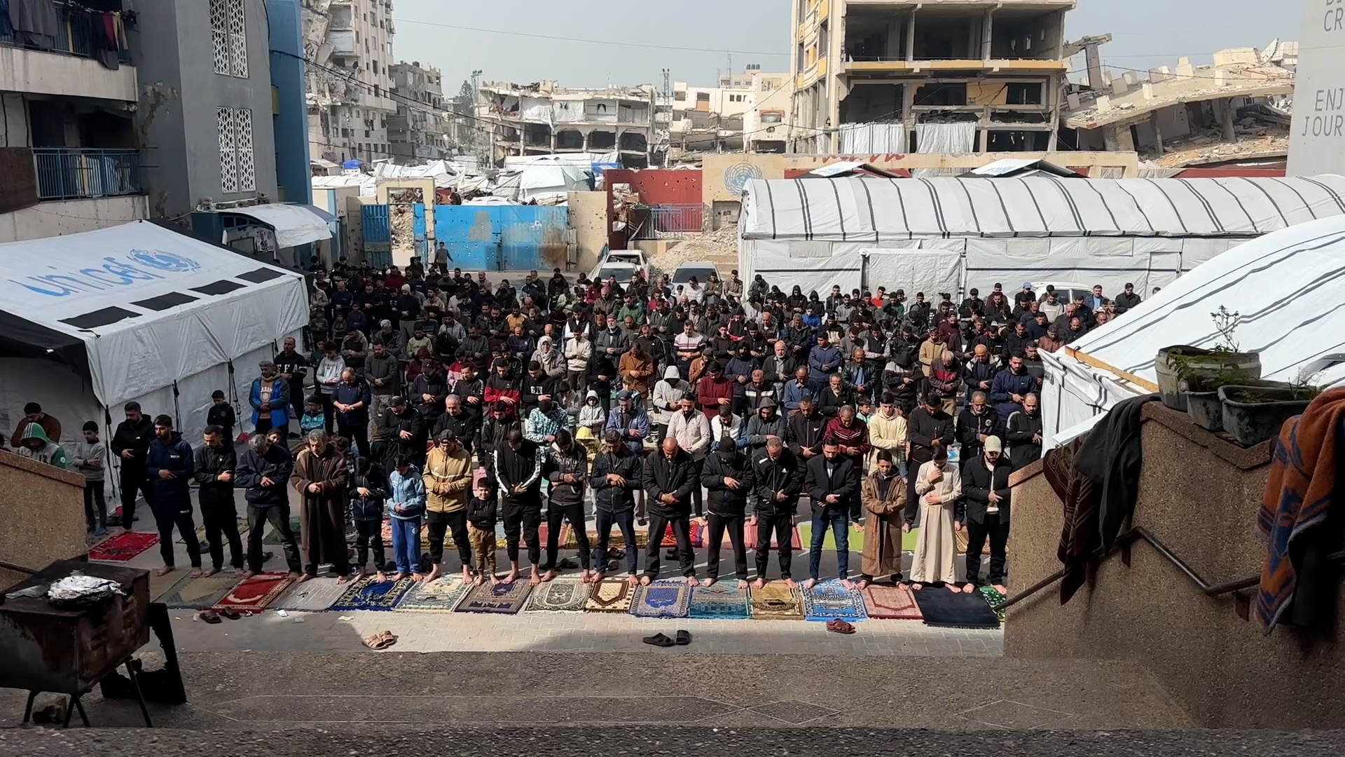 صلاة الجمعة في مدرسة تؤوي نازحين بغزة