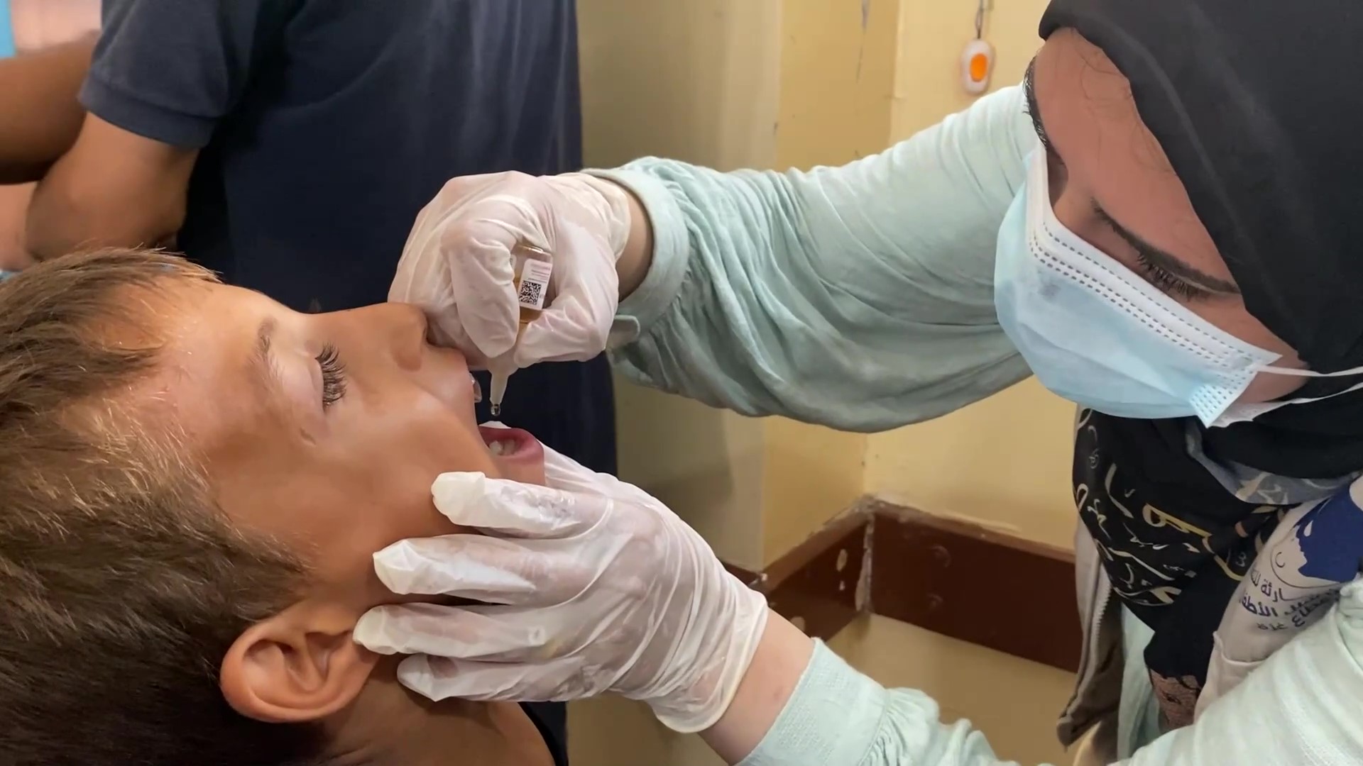 أطفال يتلقون التطعيم ضد شلل الأطفال بغزة