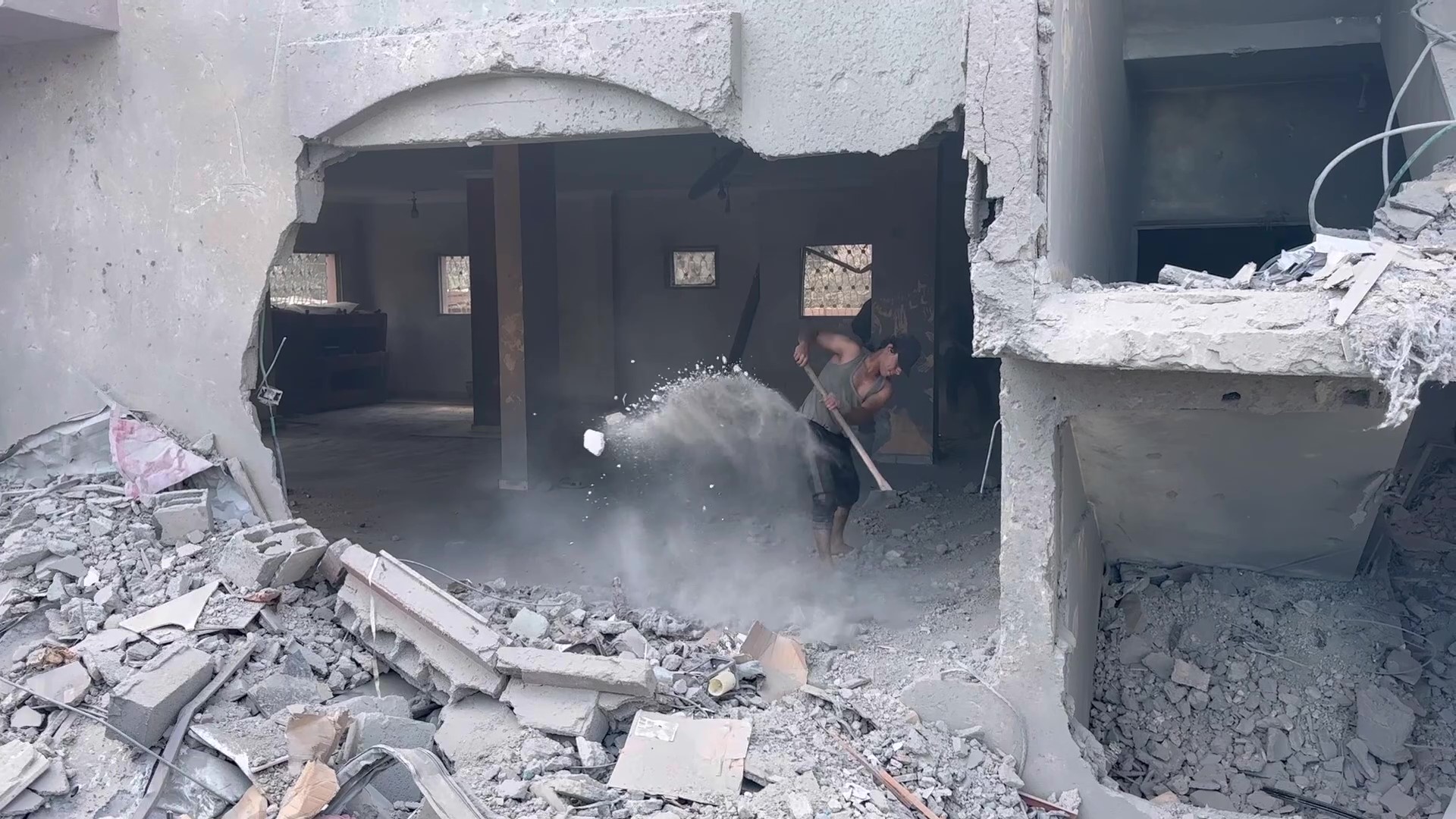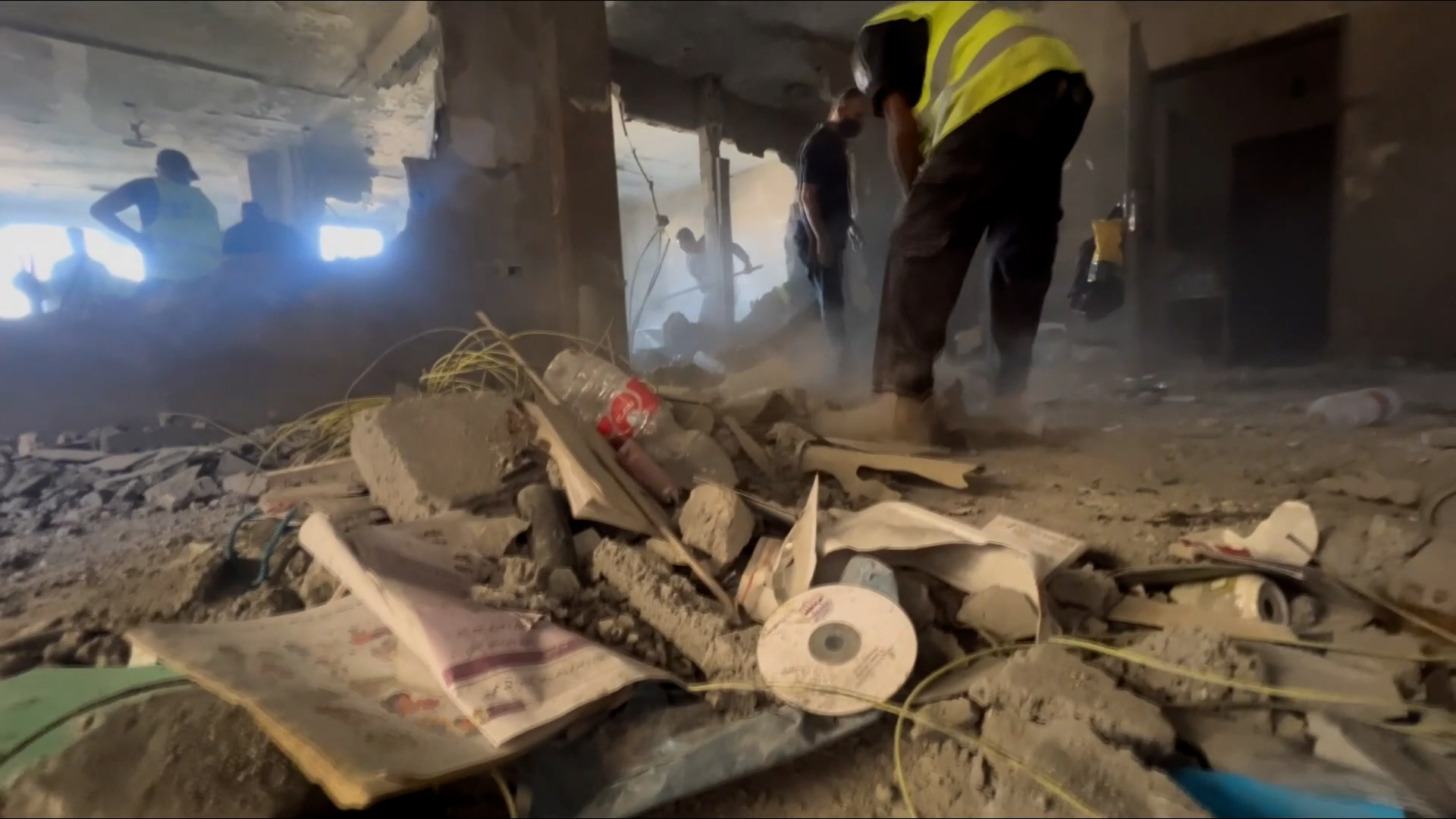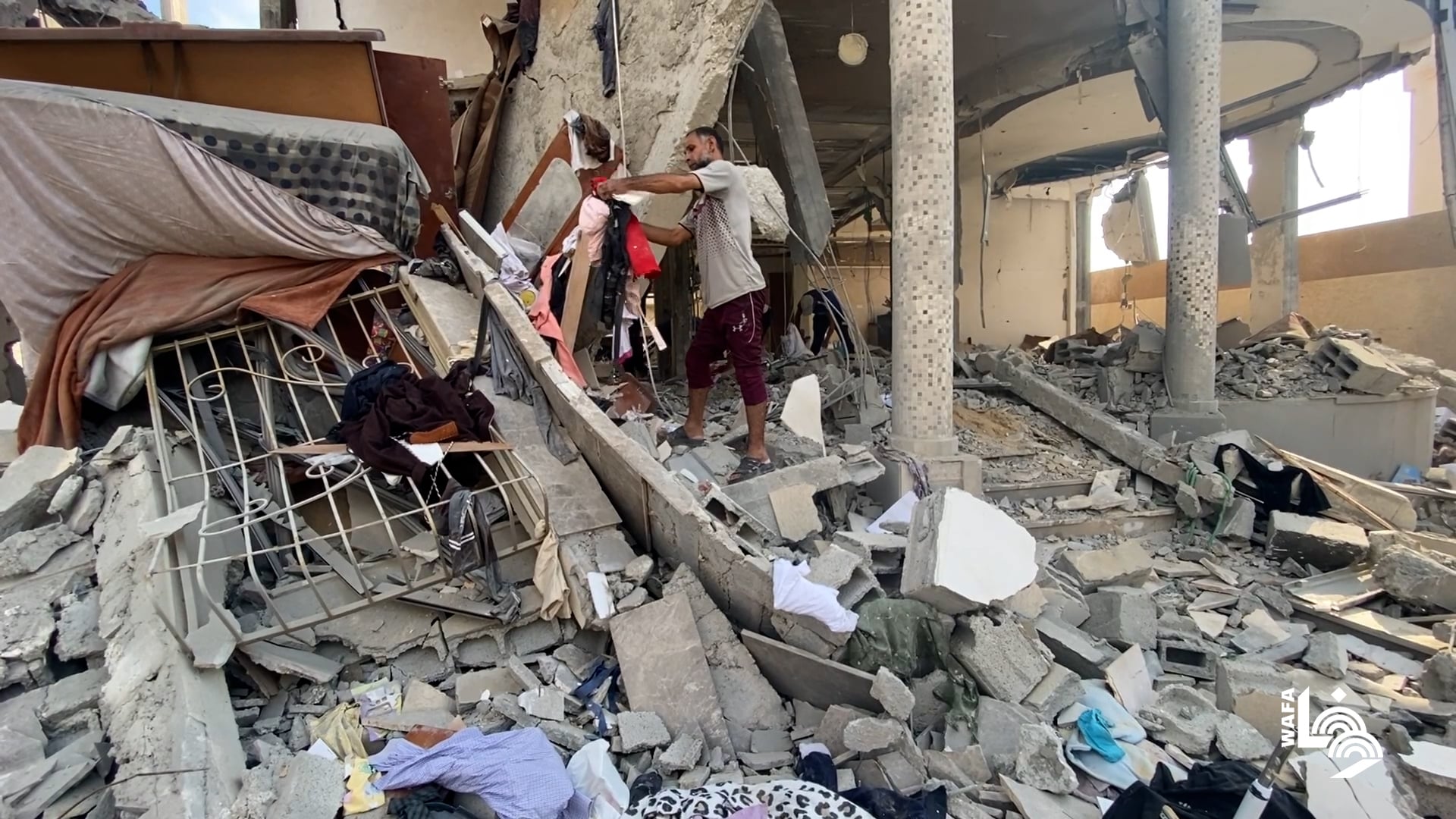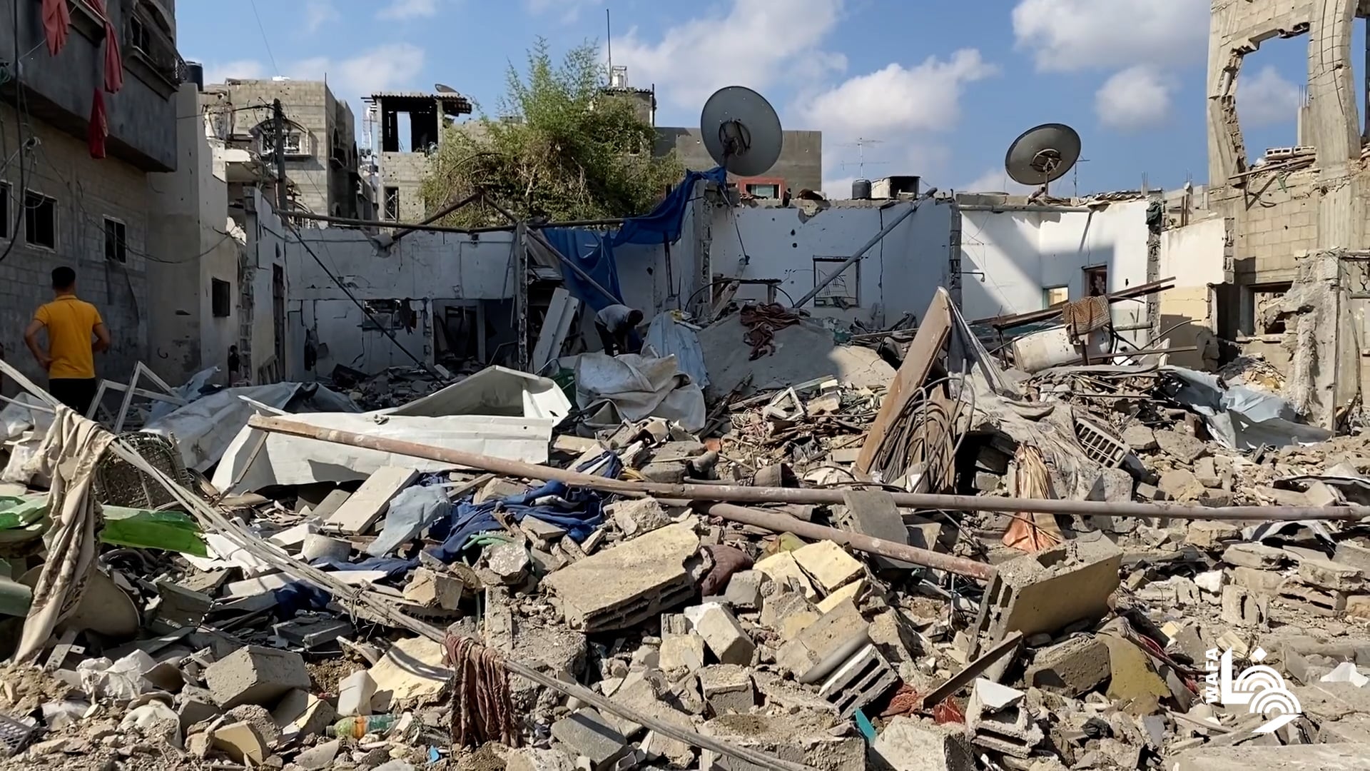 بحث عن أشلاء شهداء في مخيم النصيرات