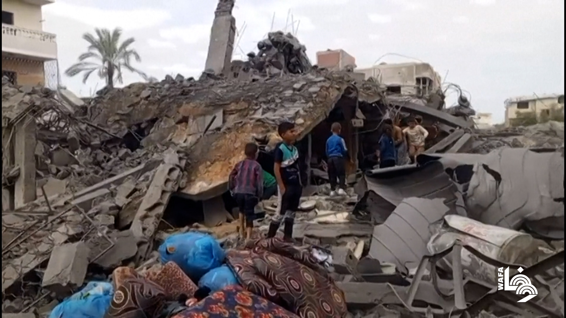 تفقّد منازل مدمرة بالقصف في مخيم المغازي