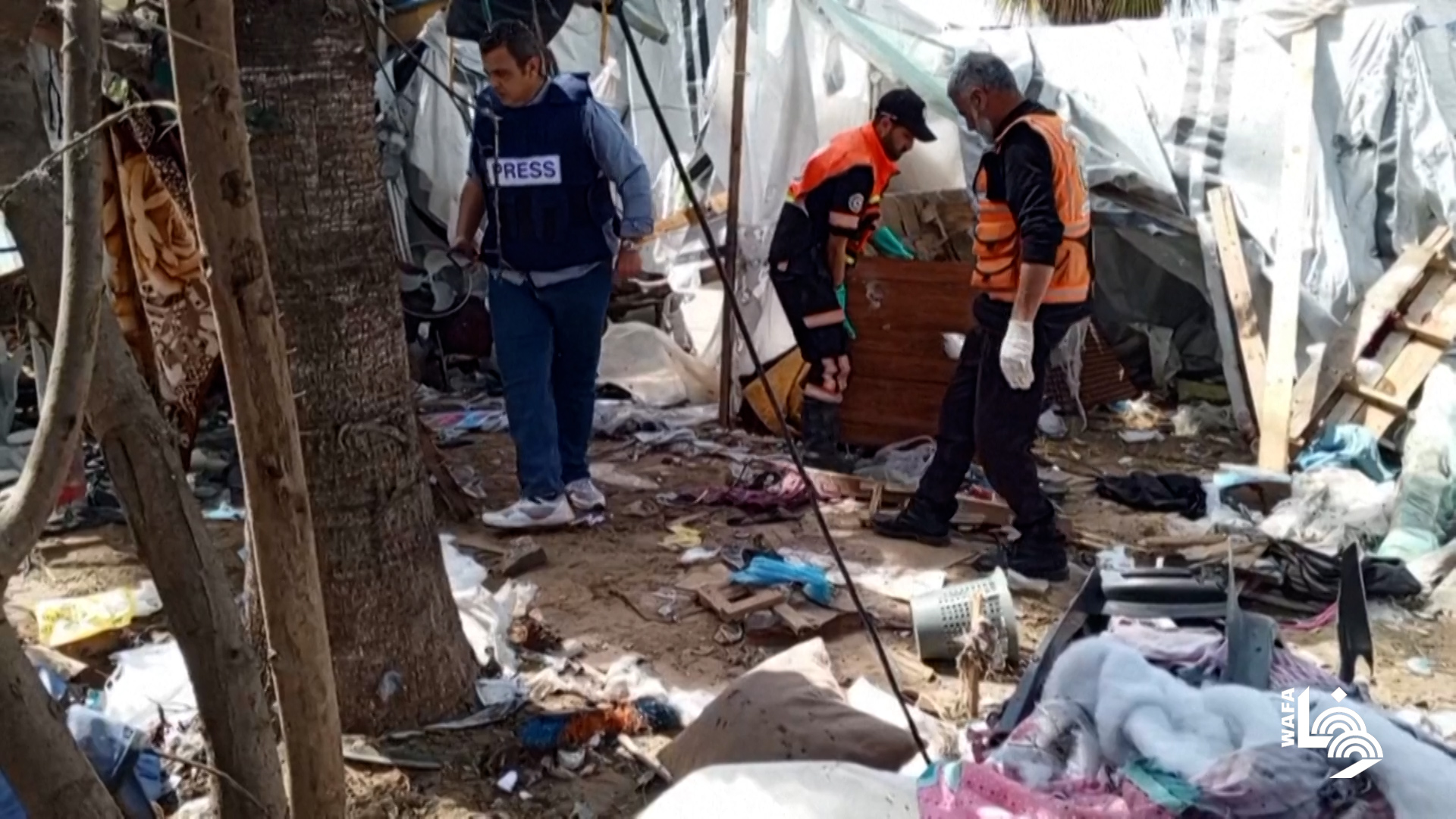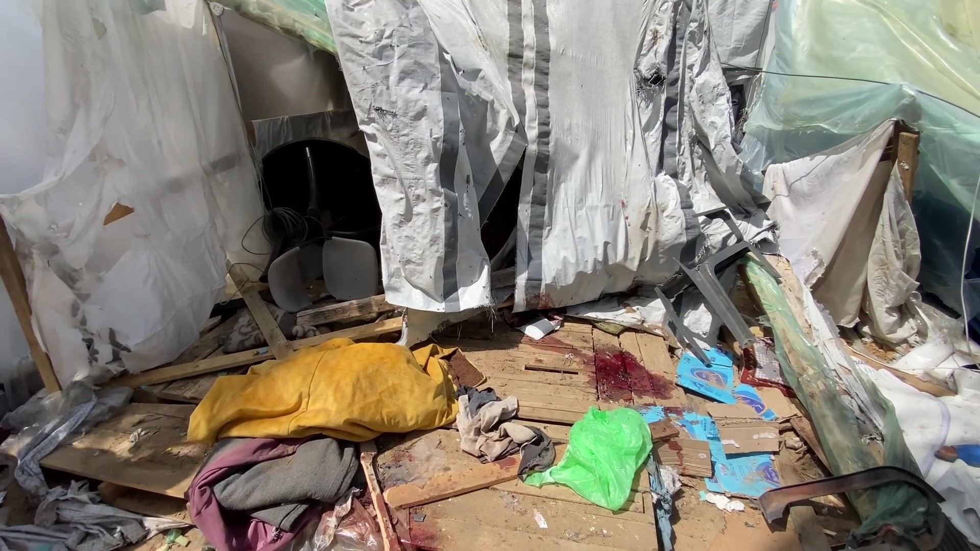 آثار قصف خيمة نازحين في مستشفى الأقصى