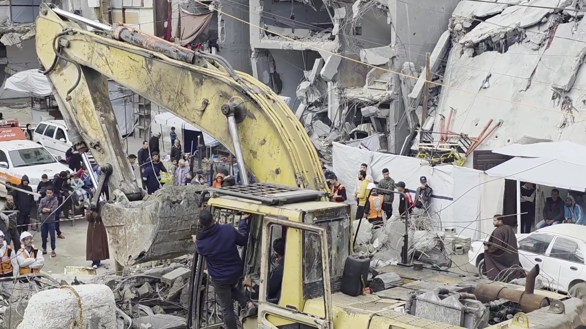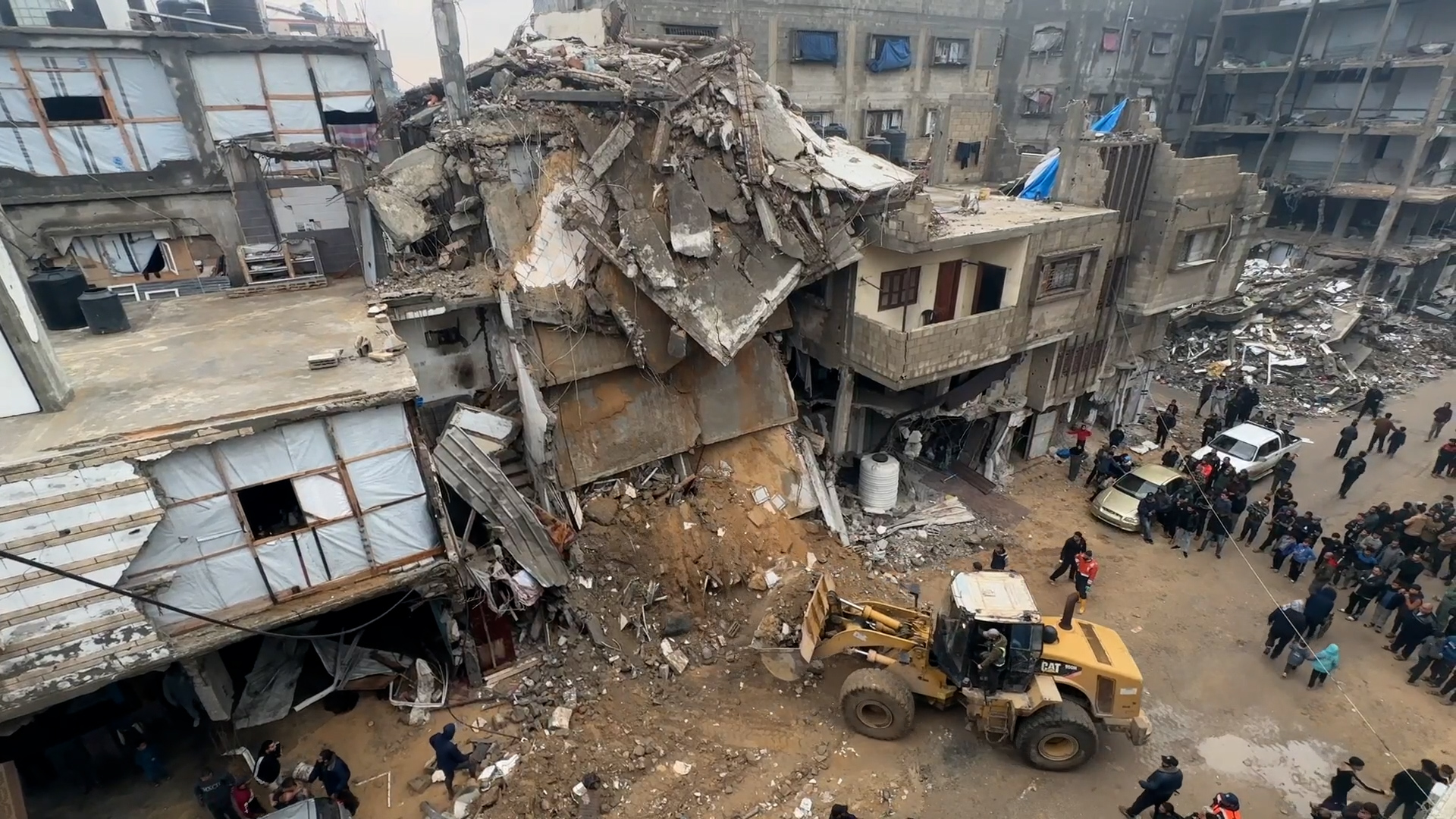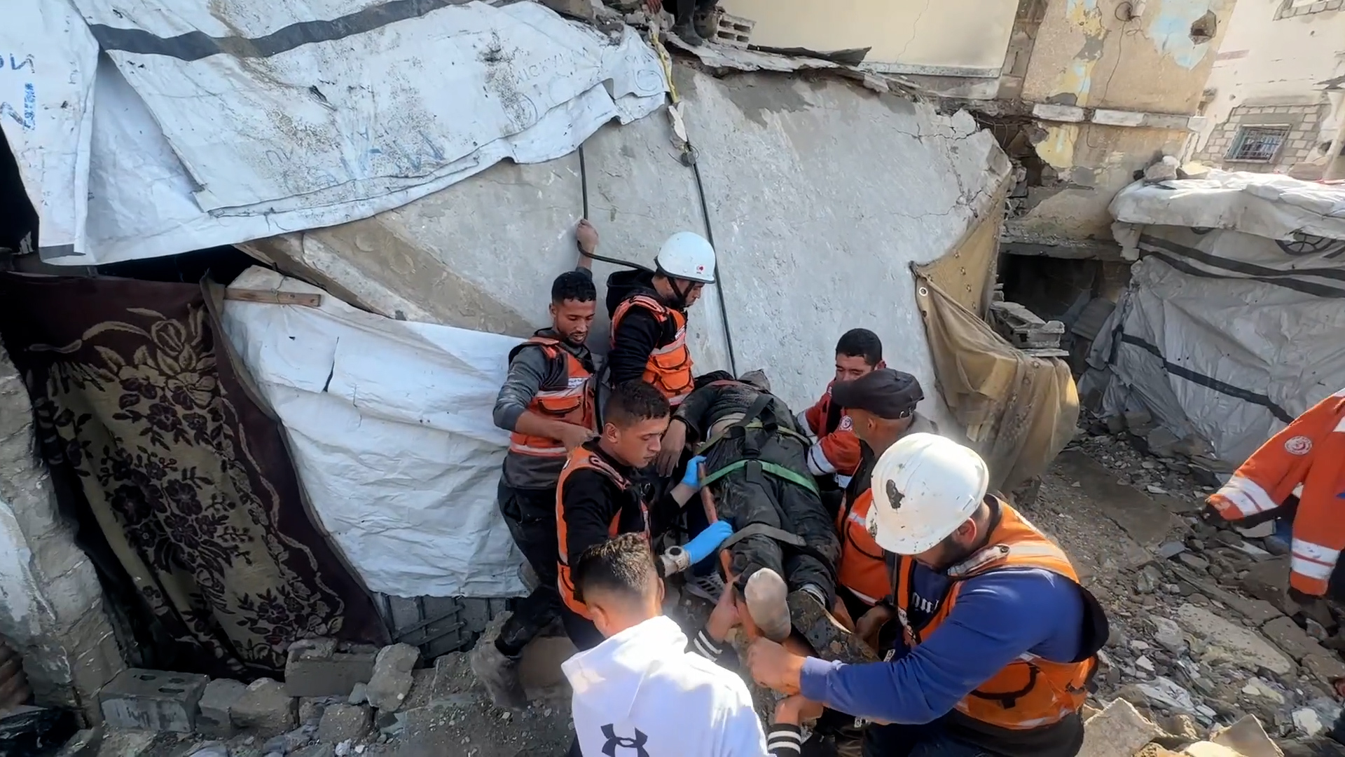 بحث عن رفات شهداء تحت الأنقاض في خان يونس