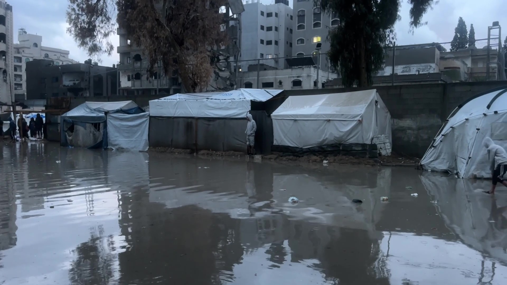 مياه الأمطار تغرق خيام النازحين في غزة