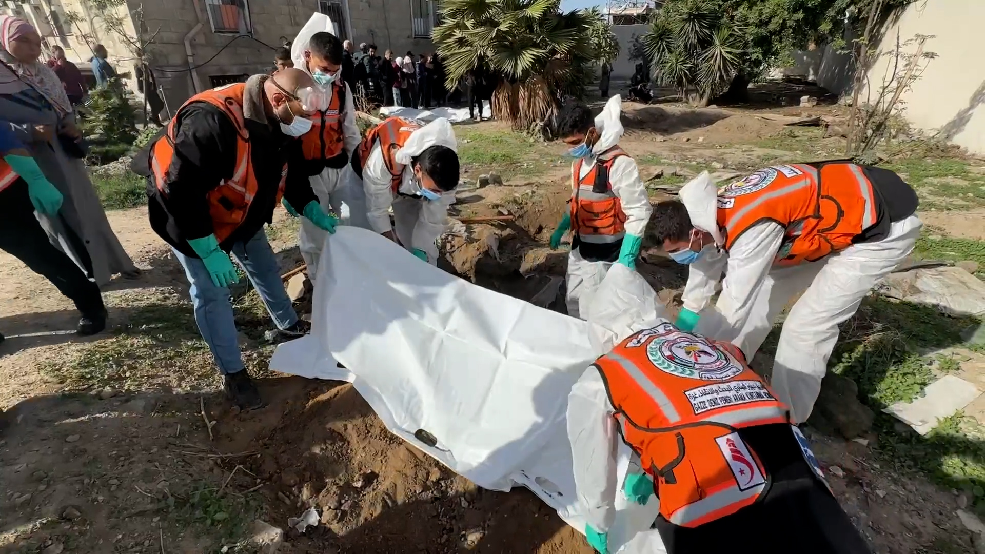 انتشال شهداء من مقبرة مؤقتة بغزة لإعادة دفنهم