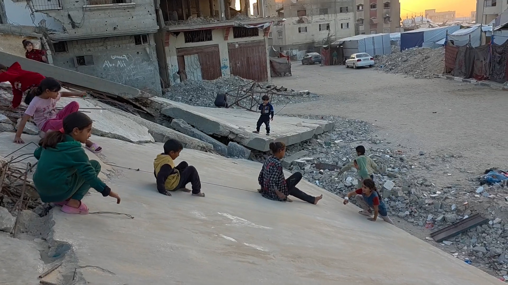أطفال يلهون فوق الأنقاض