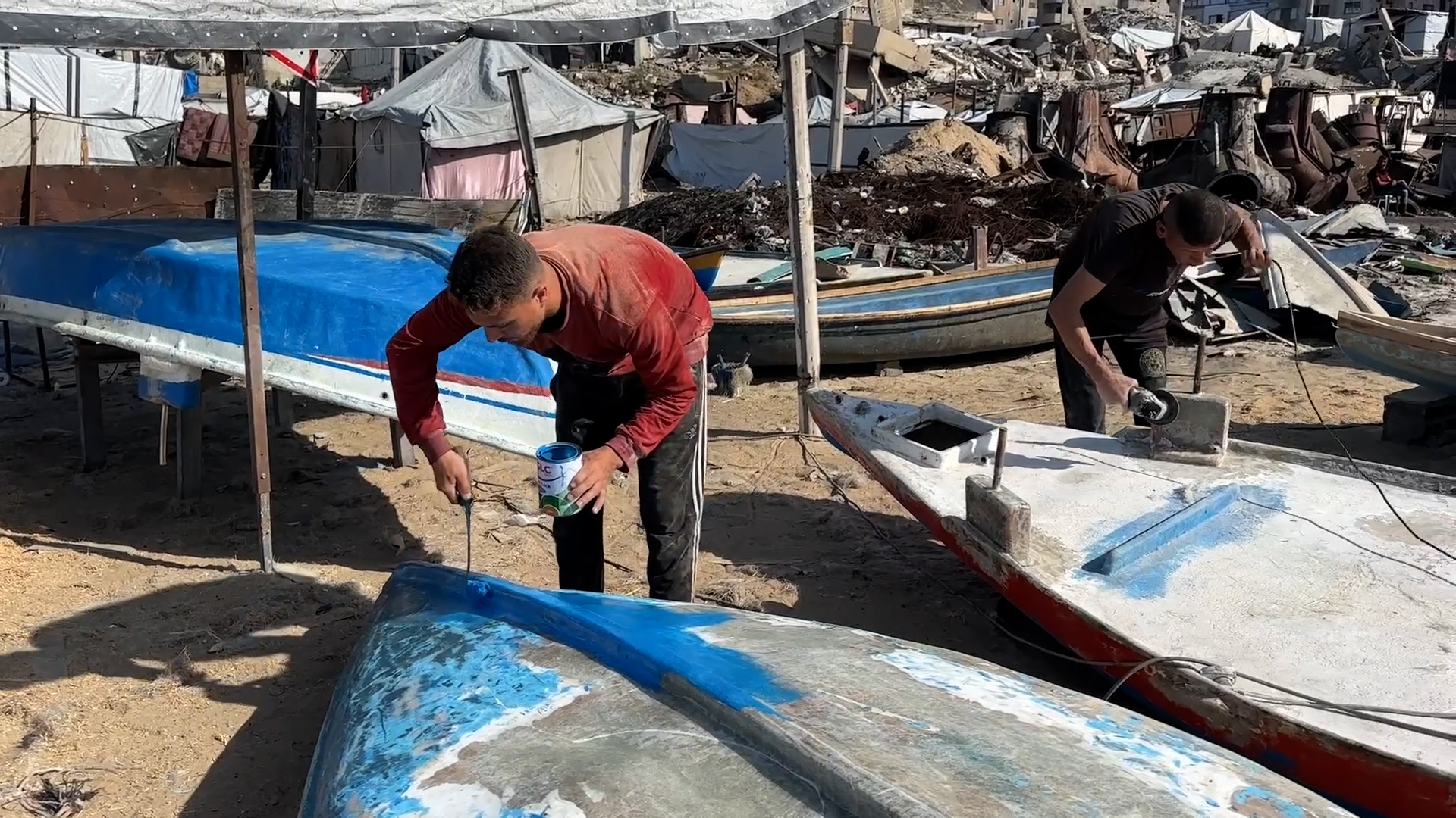 إصلاح وترميم قوارب صيد مدمرة في غزة