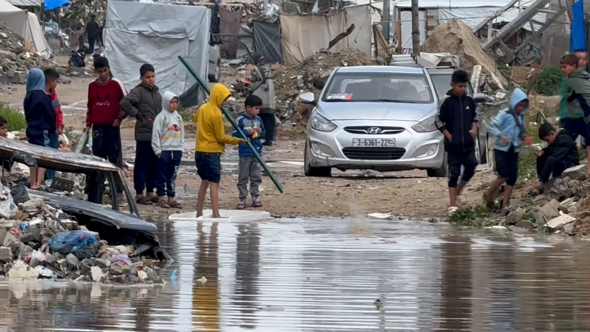 أمطار غزيرة ومياه عادمة تغرق خيام النازحين بغزة