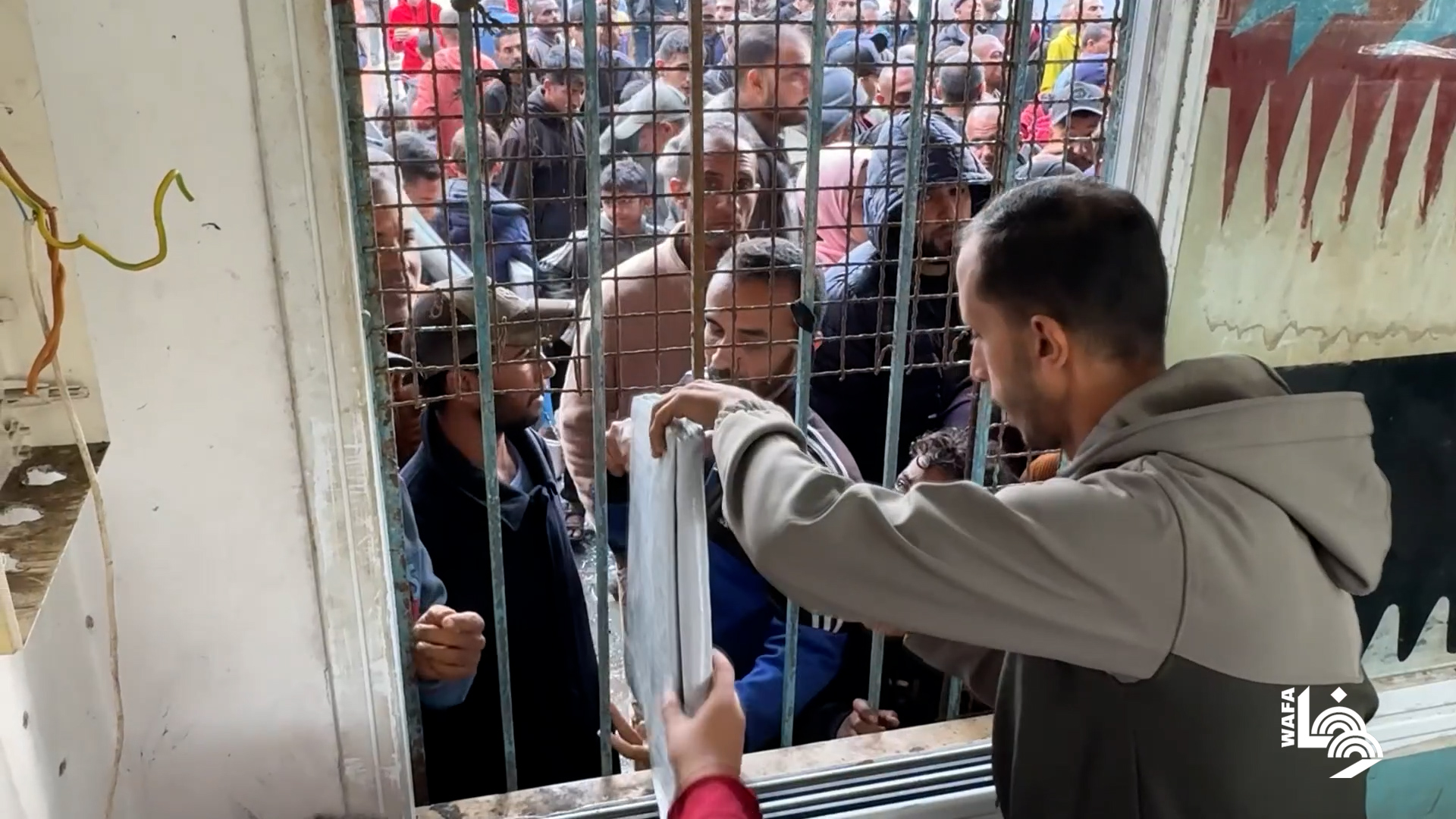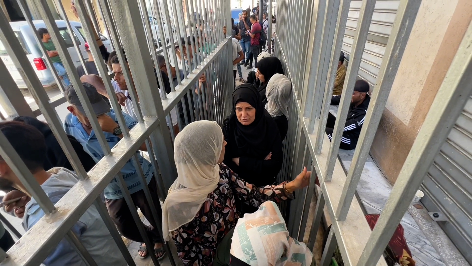 زحمة أمام أحد البنوك في ظل أزمة السيولة في غزة