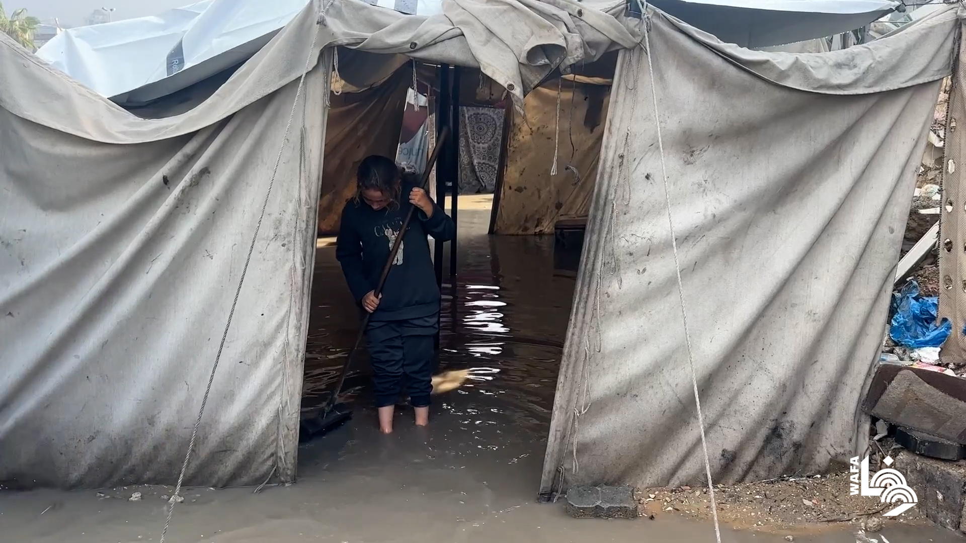 حياة النازحين في غزة خلال المنخفض الجوي