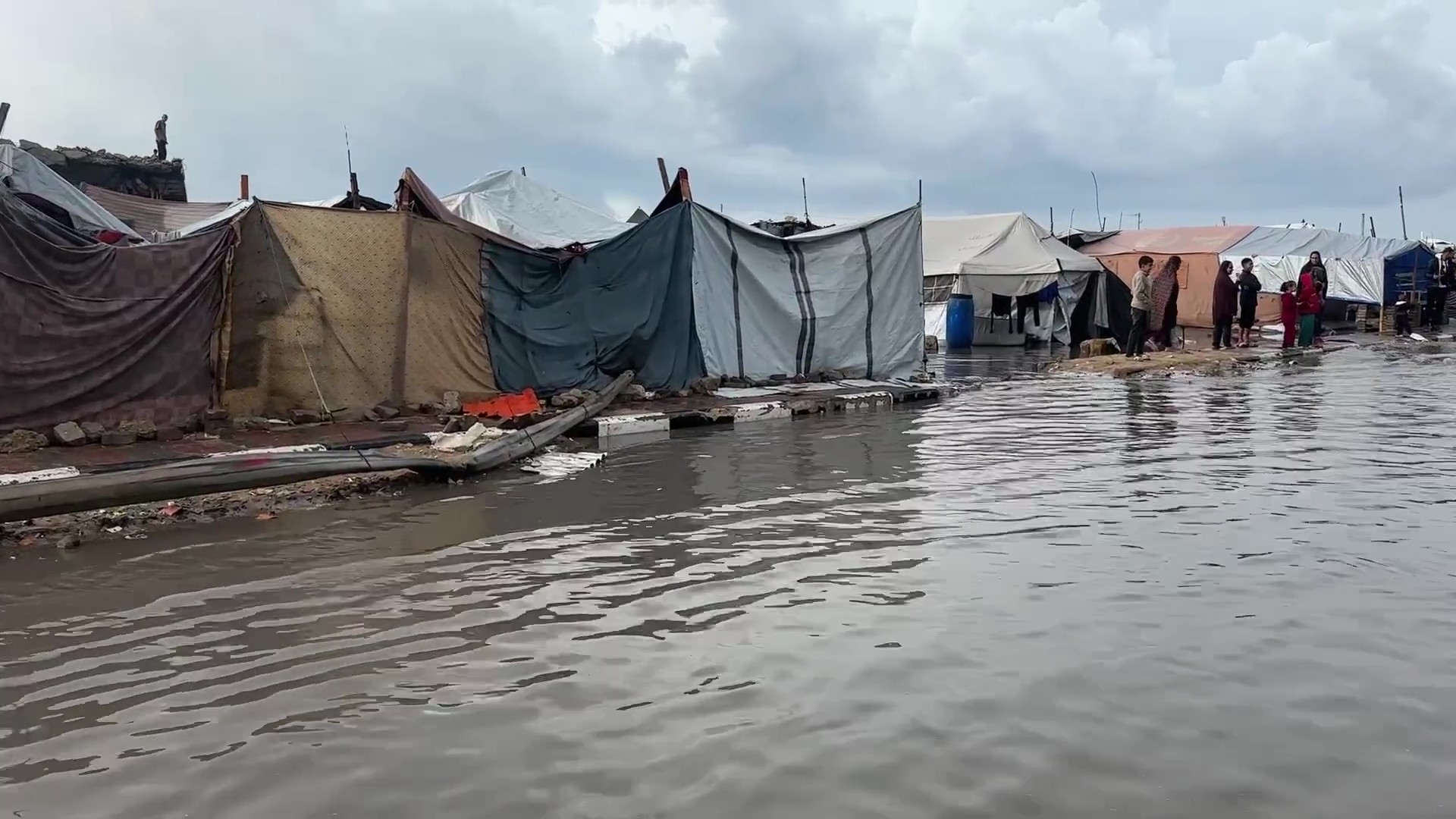مياه الأمطار تغرق خيام النازحين في غزة