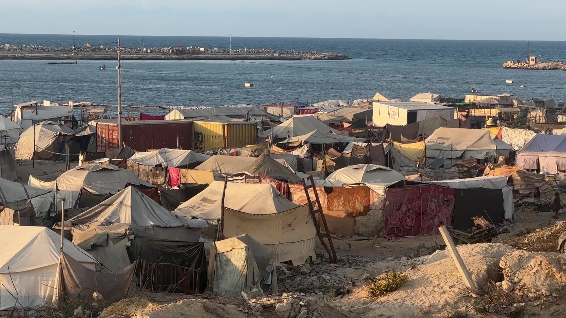 تكدّس خيام النازحين في ميناء غزة