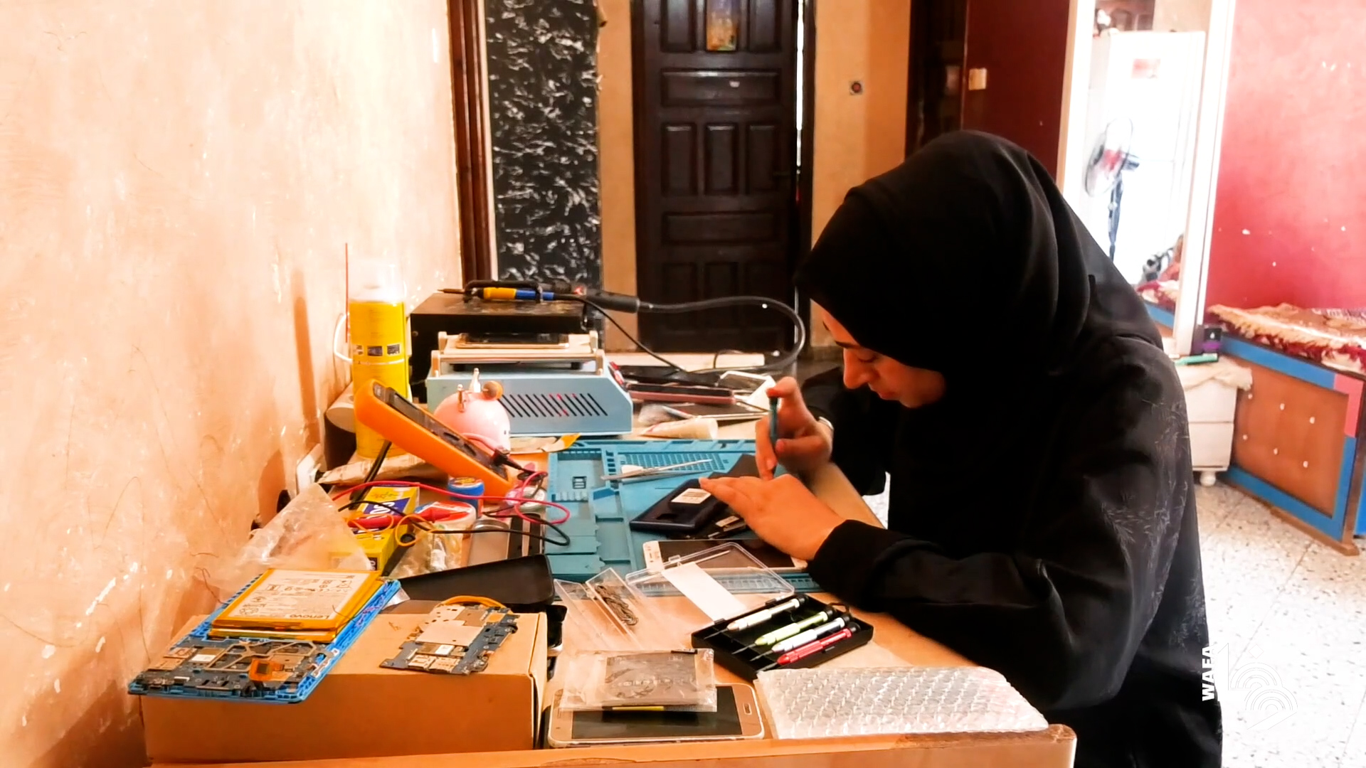 ولاء أبو حماد تعمل في صيانة الهواتف المحمولة