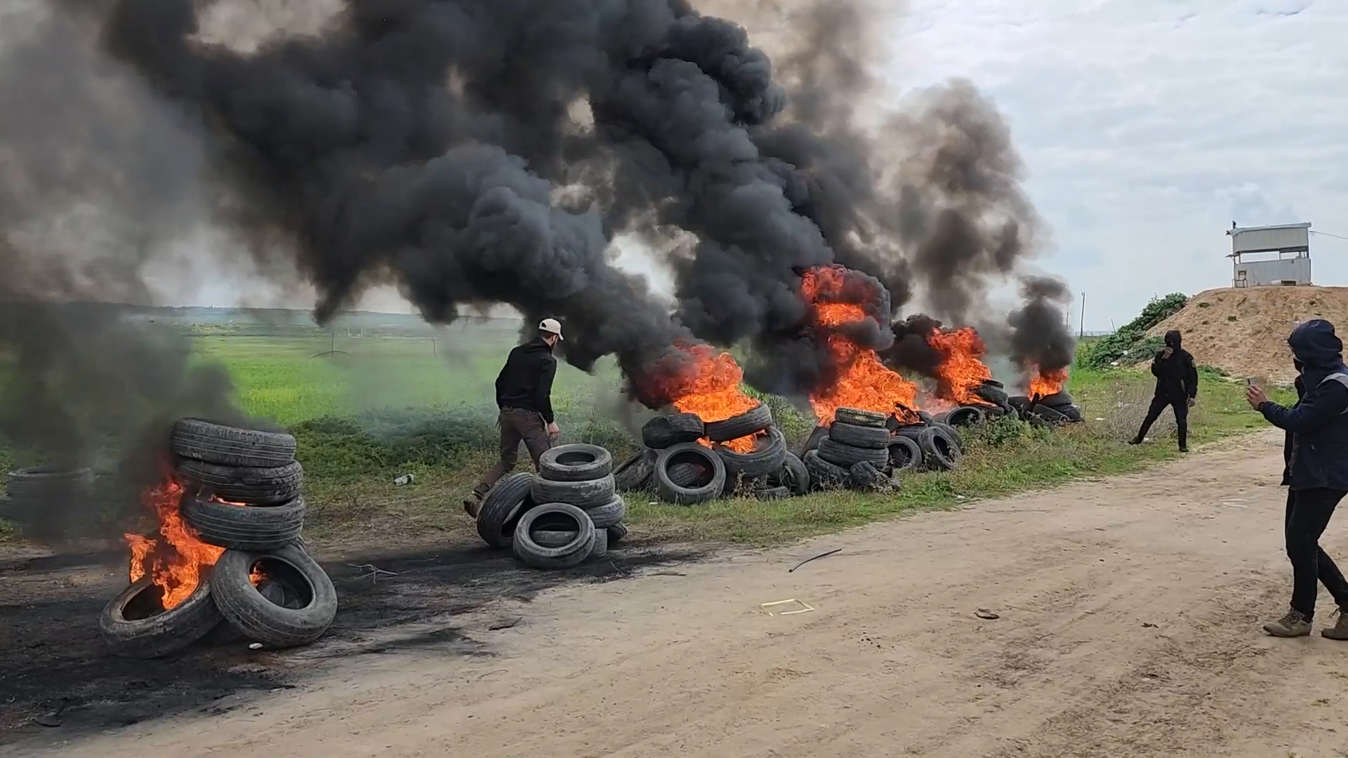 شبان يحرقون الاطارات على حدود جباليا