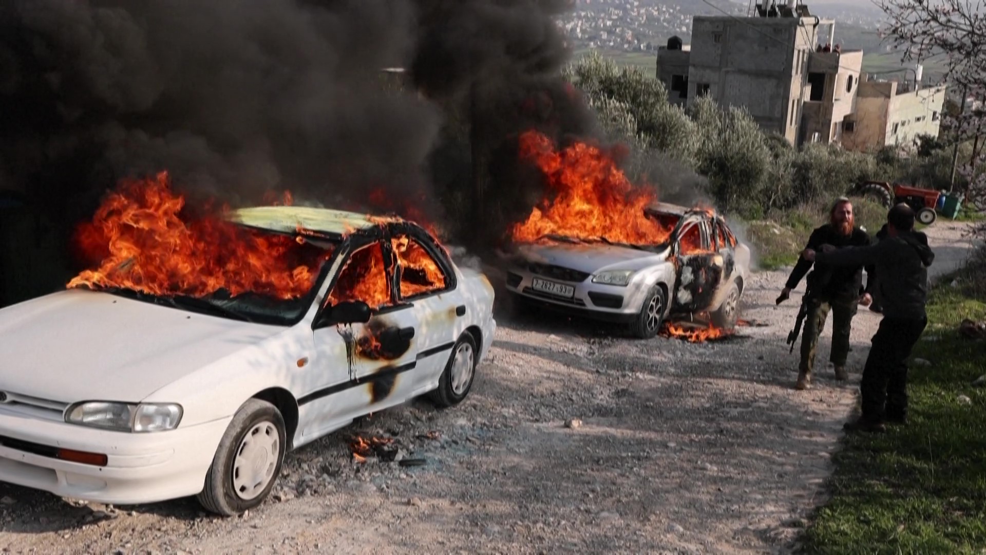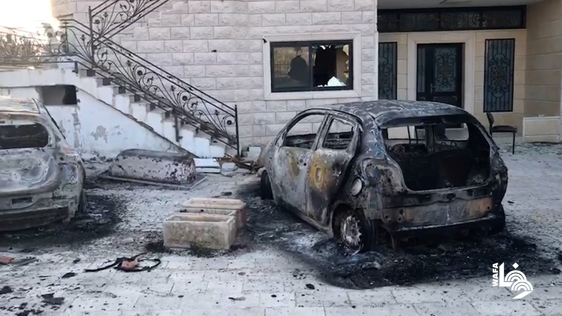 آثار الدمار الذي خلفه المستوطنون في حوارة