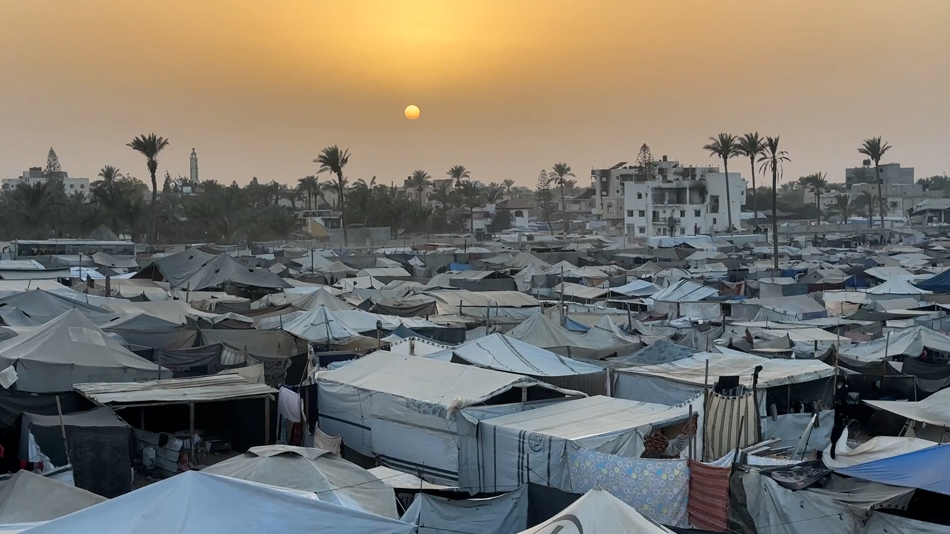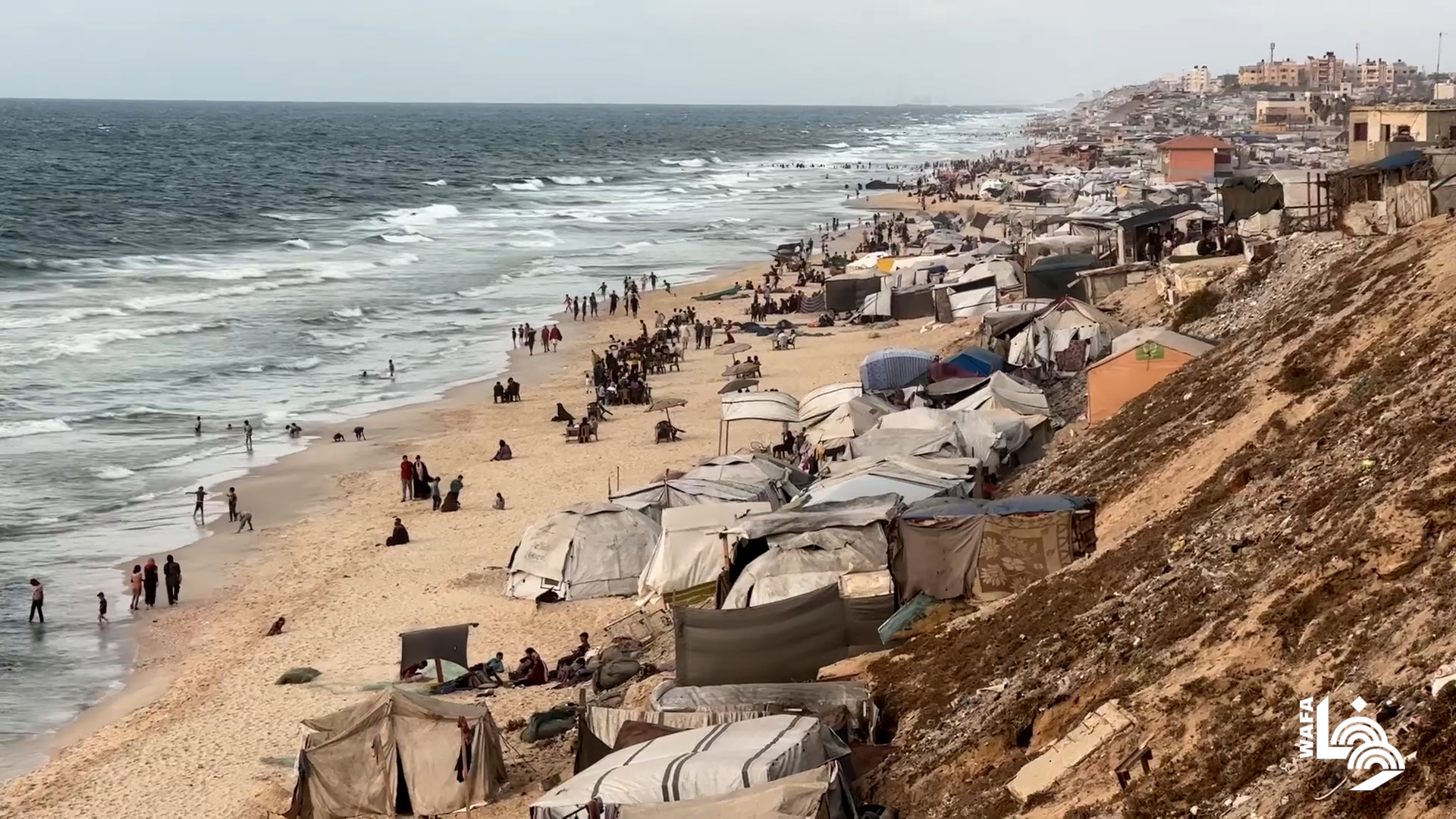 نازحون ينتظرون الحصول على طعام بالنصيرات