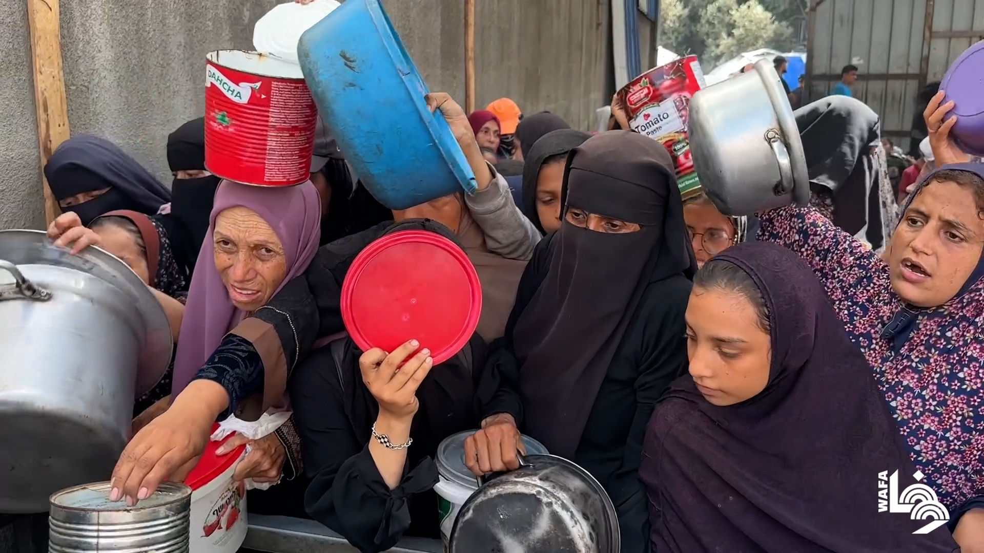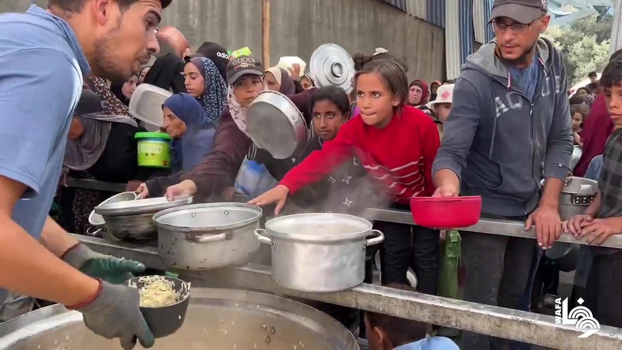 مجوّعون ينتظرون الحصول على طعام بالنصيرات