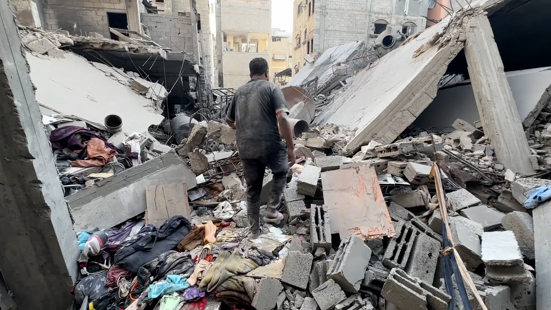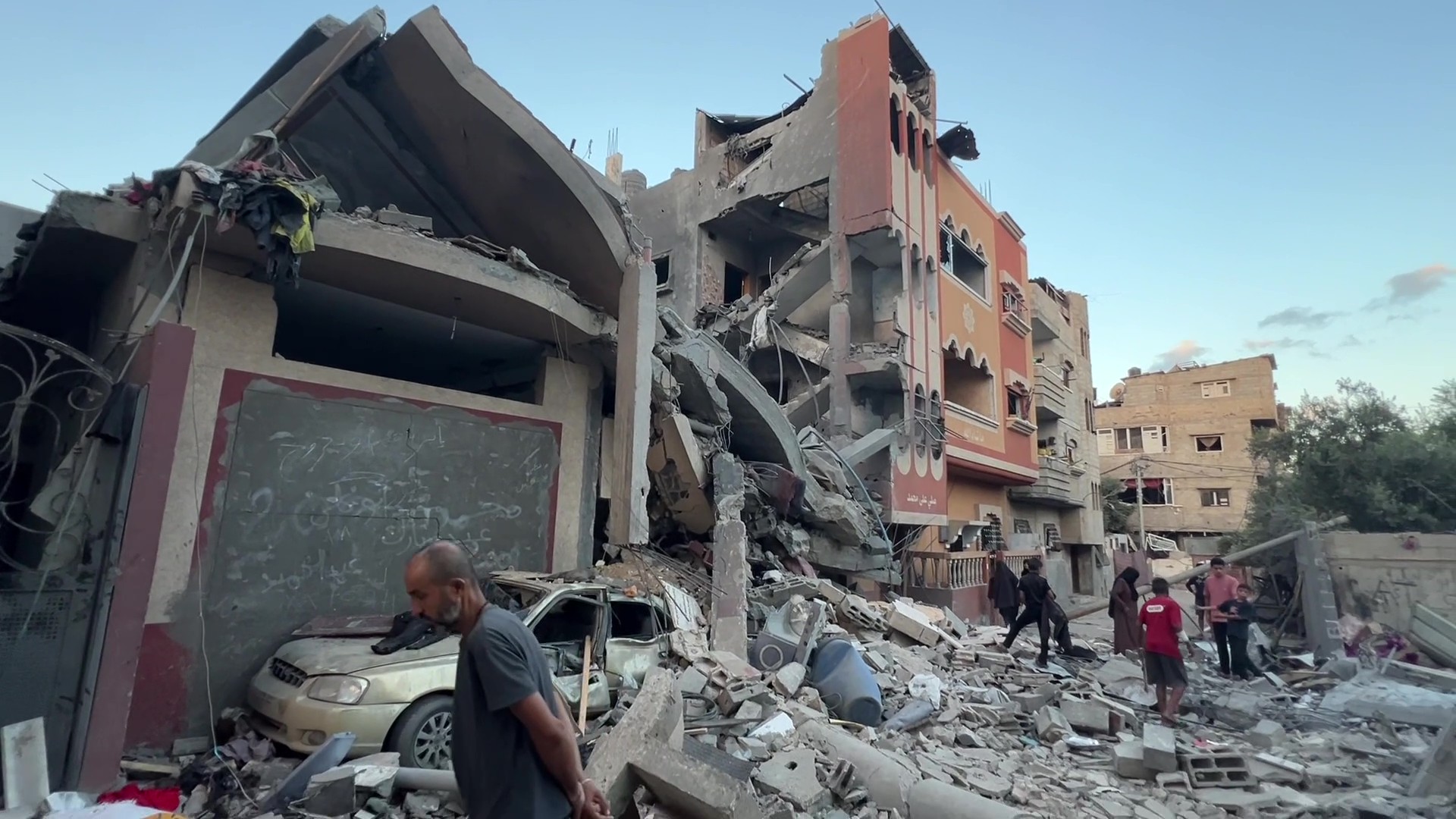 تفقد آثار قصف إسرائيلي استهدف منزلاً في غزة