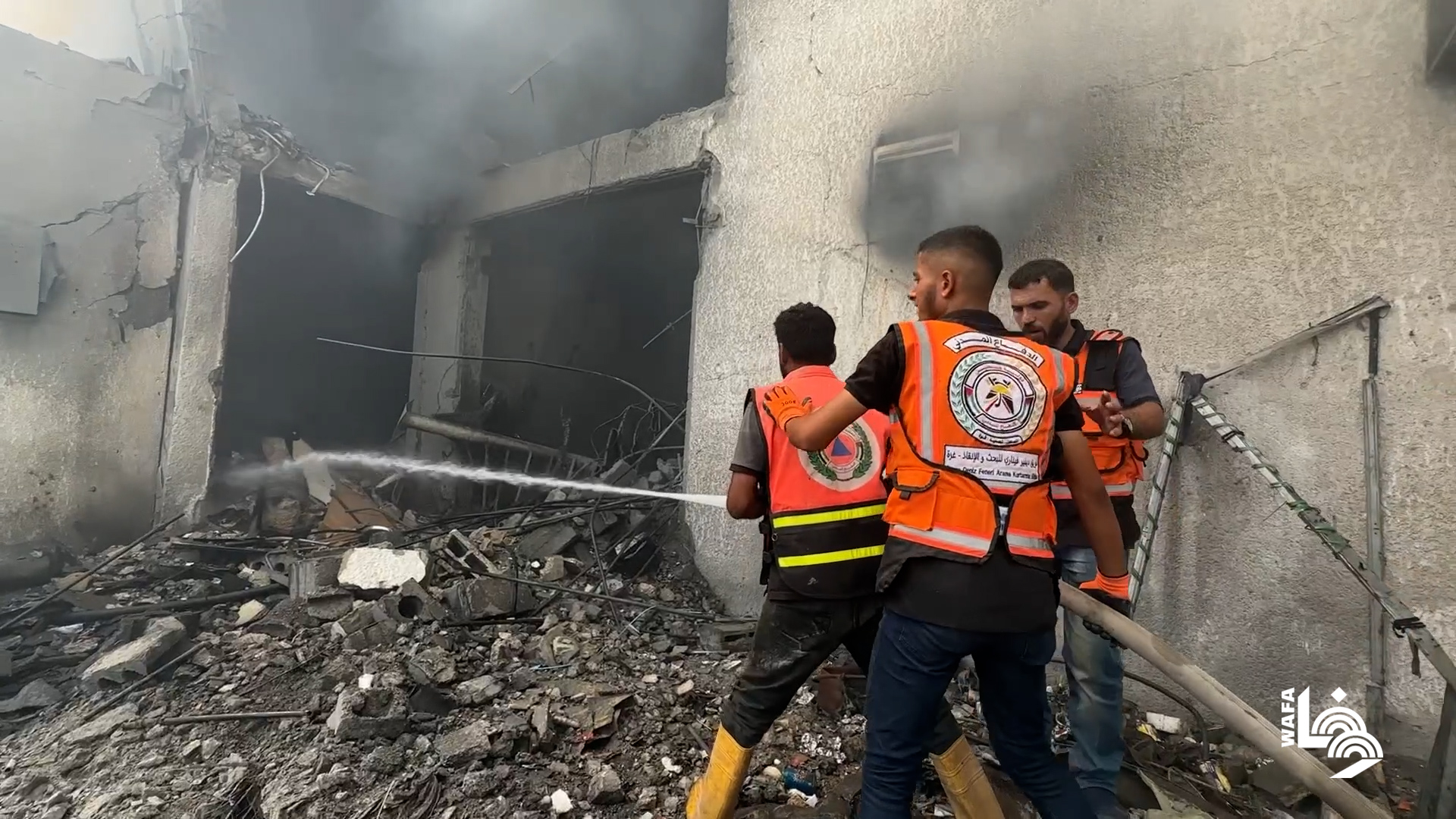 إخماد حريق منزل قصفه الاحتلال في غزة