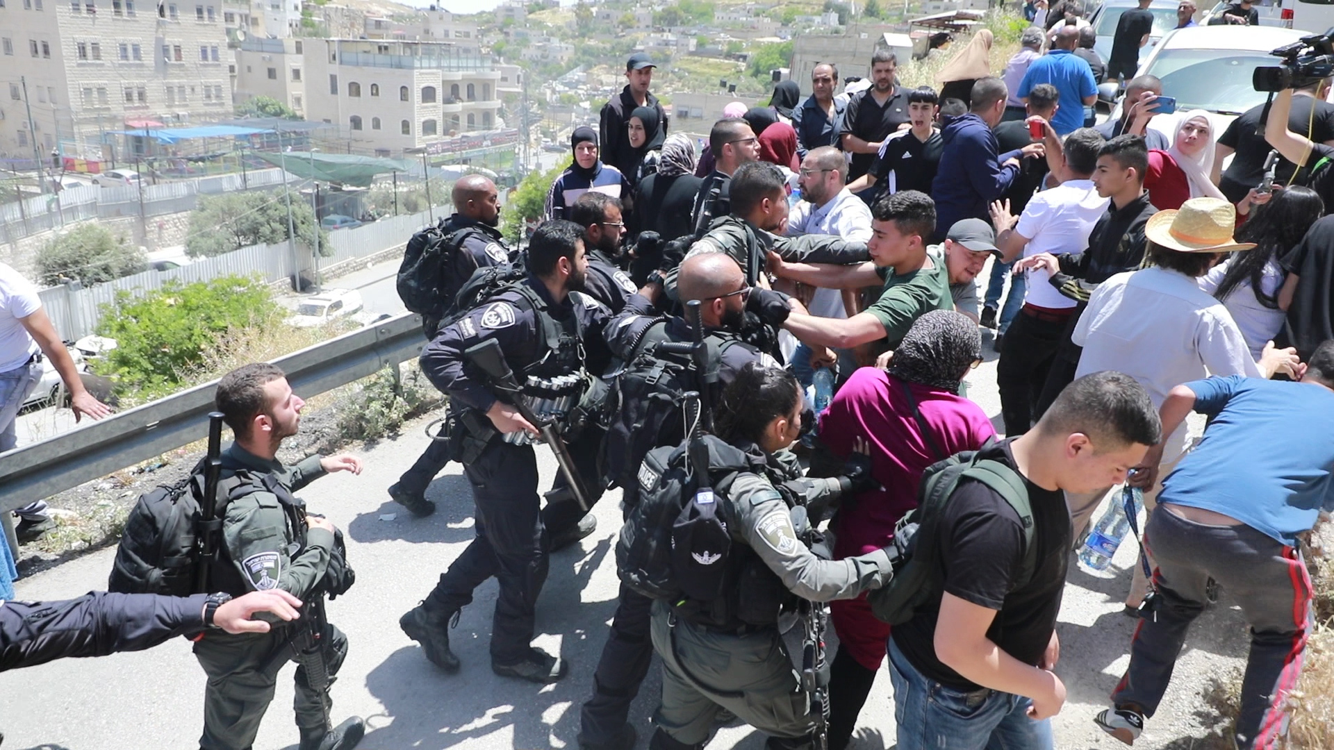 قمع الأهالي خلال هدم بناية الرجبي في سلوان
