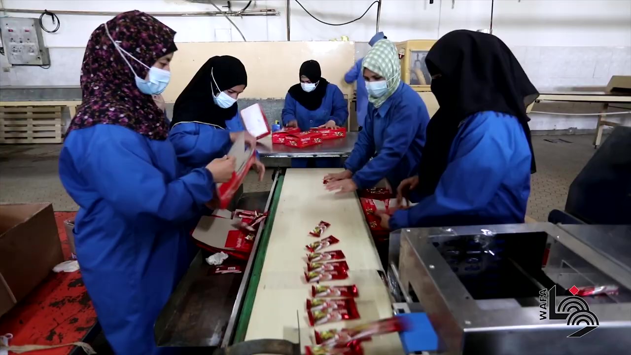 نساء يعملن في مصنع للبسكويت في دير البلح