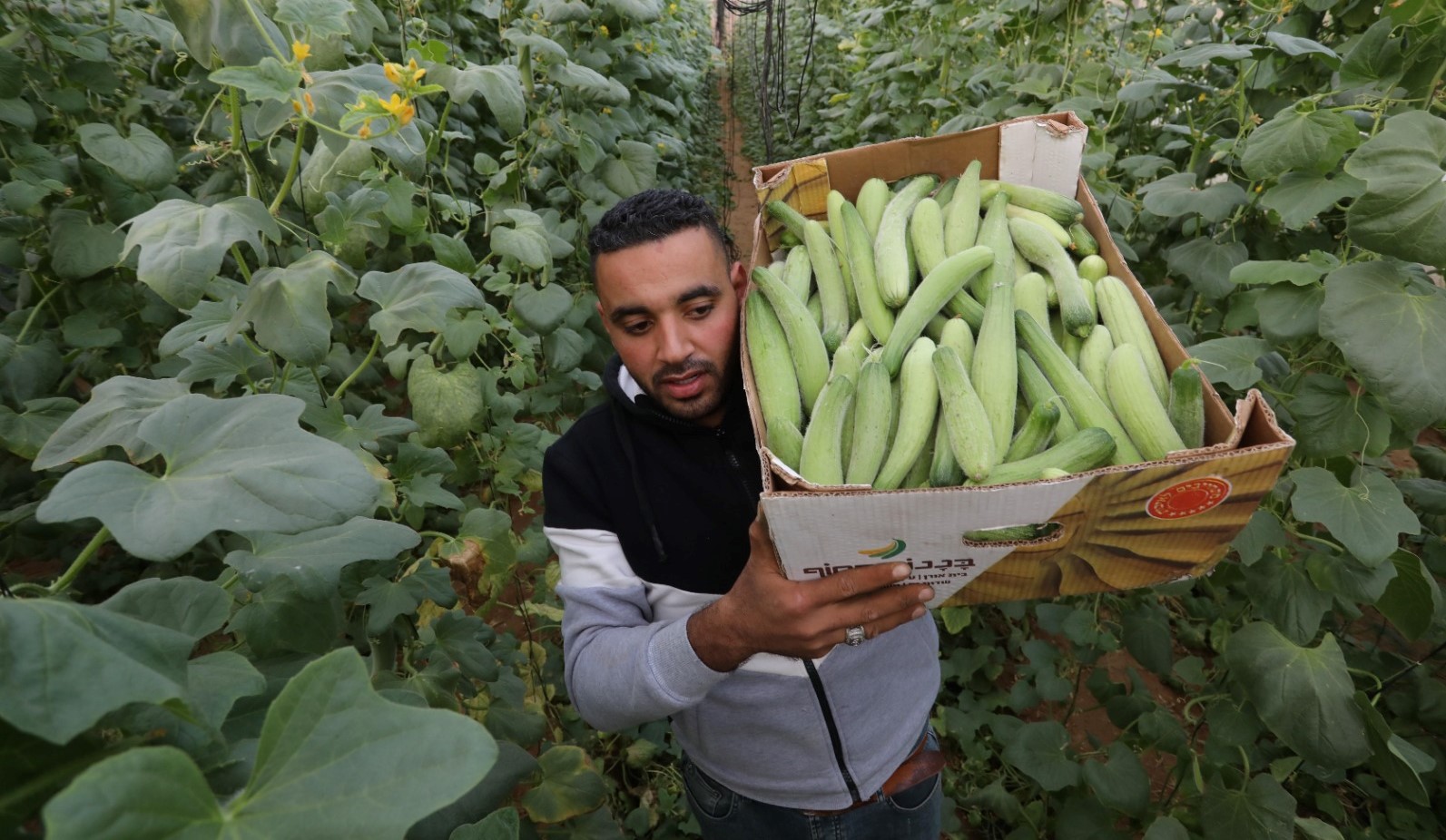 مزارعون يقطفون الفقوس وسط قطاع غزة