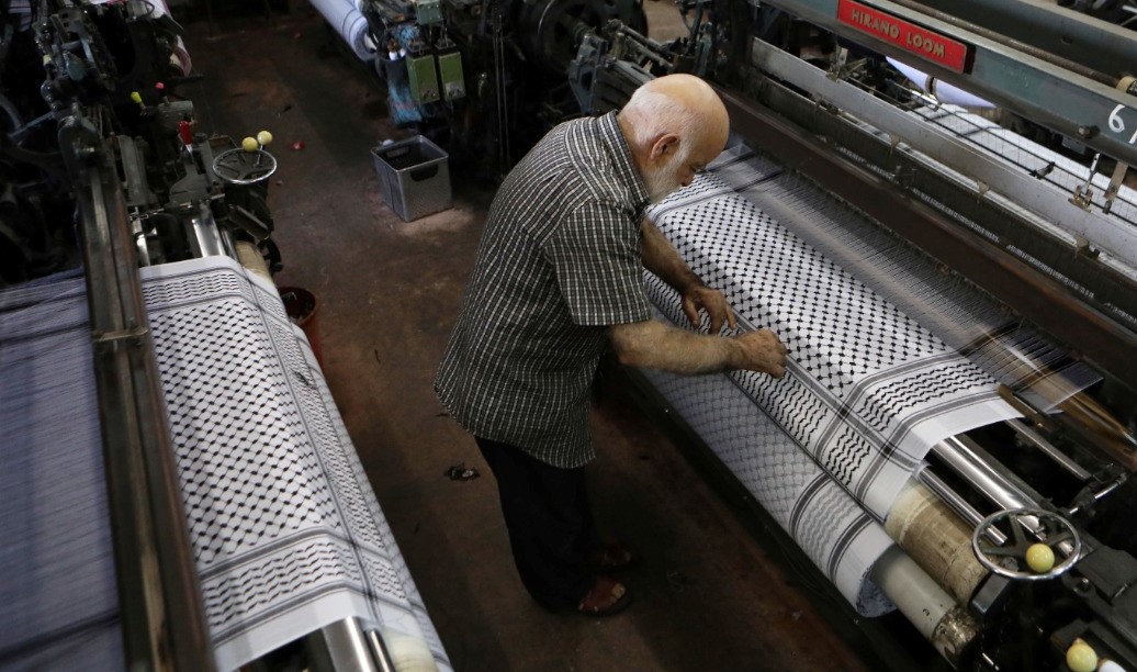 صناعة الكوفية في أحد مصانع الخليل