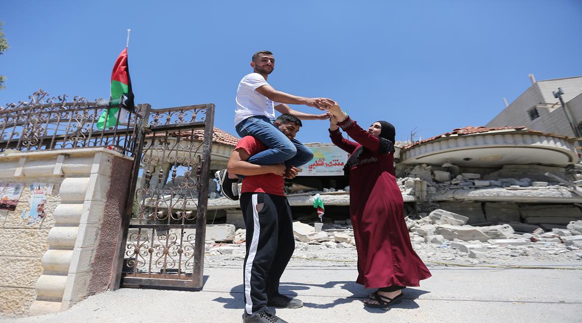 ابن الأسير الشلبي يحتفل بتفوقه على أنقاض منزله