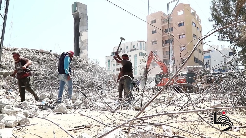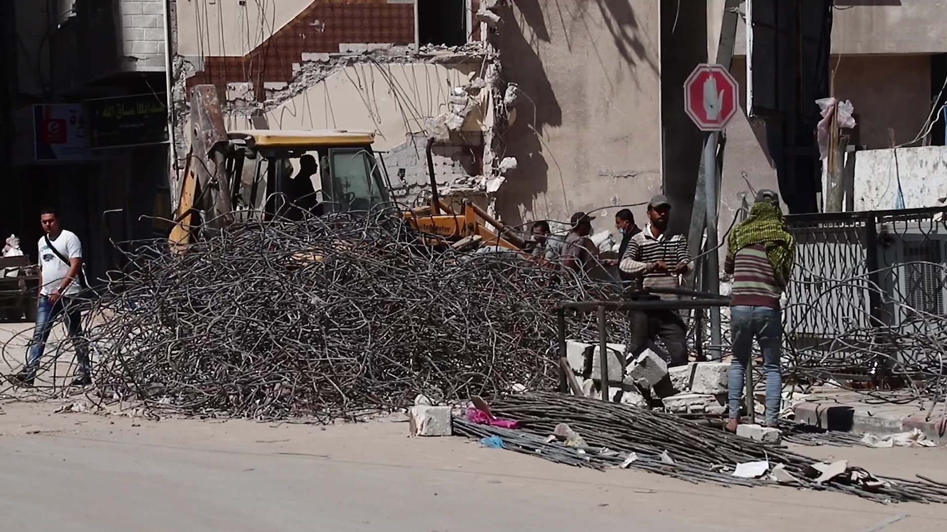 إعادة استخدام الحديد من مبانِ مدمرة في غزة