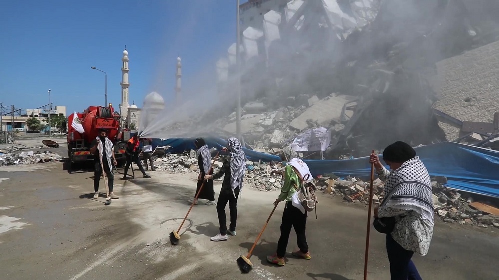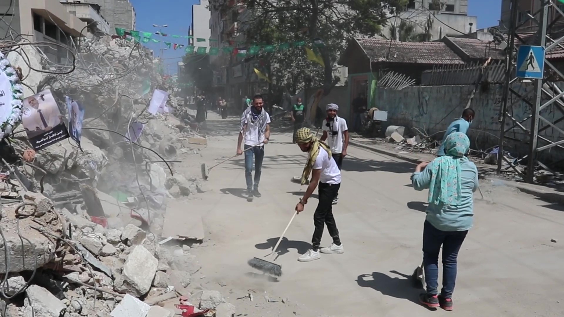 متطوعون يزيلون آثار القصف من شوارع غزة