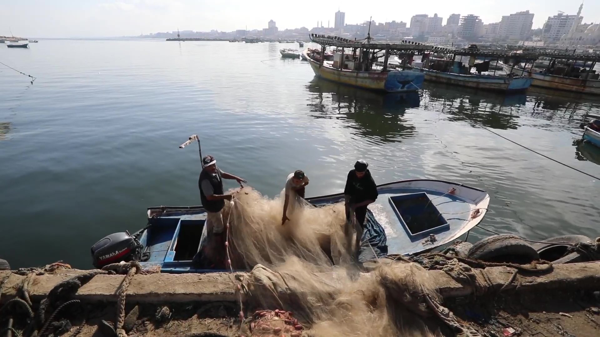 سوق السمك ومراكب الصيادين في ميناء غزة