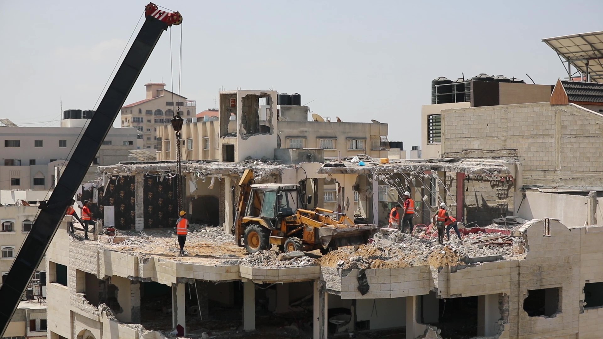 إزالة مبنى دمره القصف الإسرائيلي في غزة