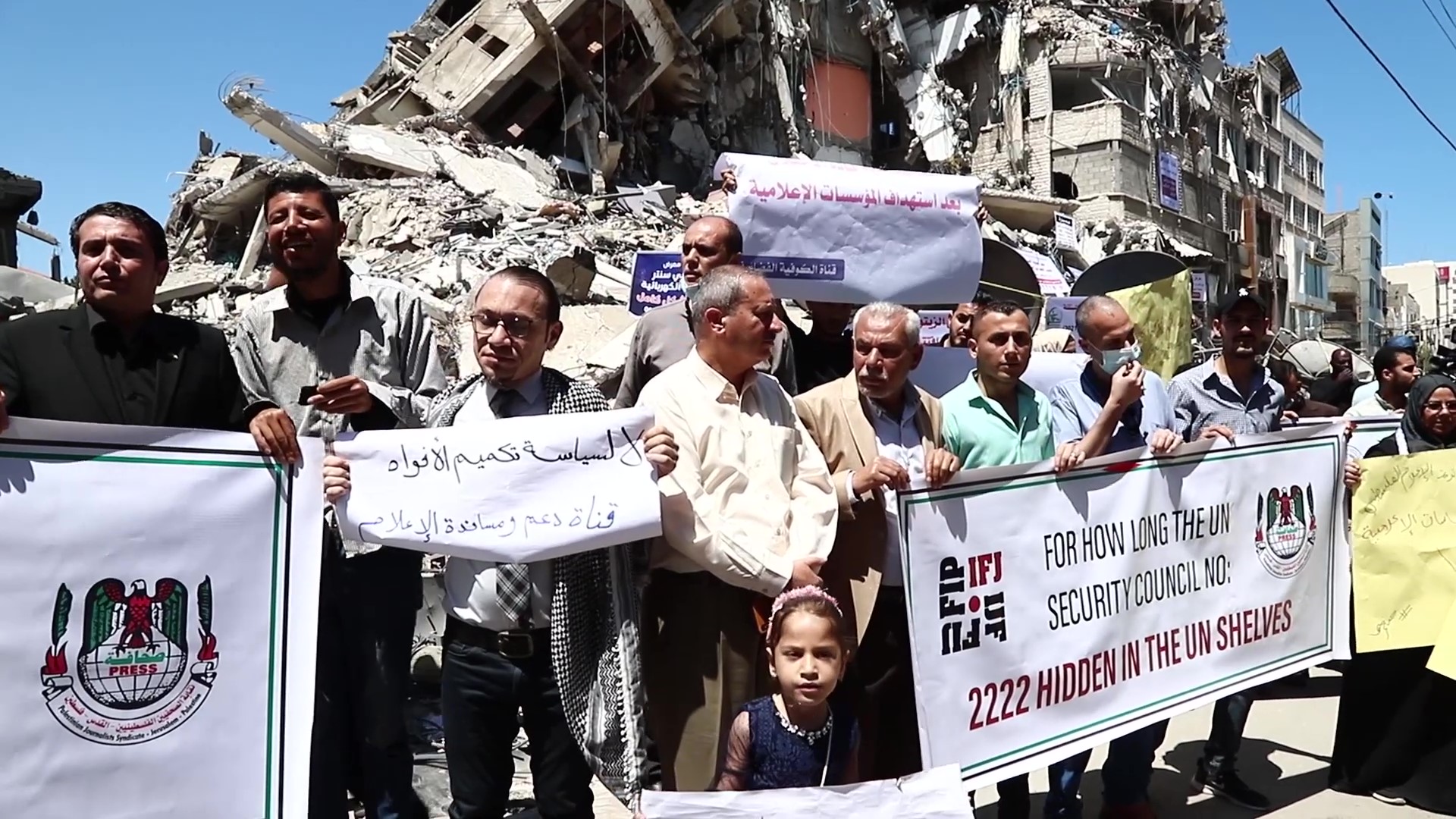 غزة: مسيرة تندد باستهداف المؤسسات الإعلامية