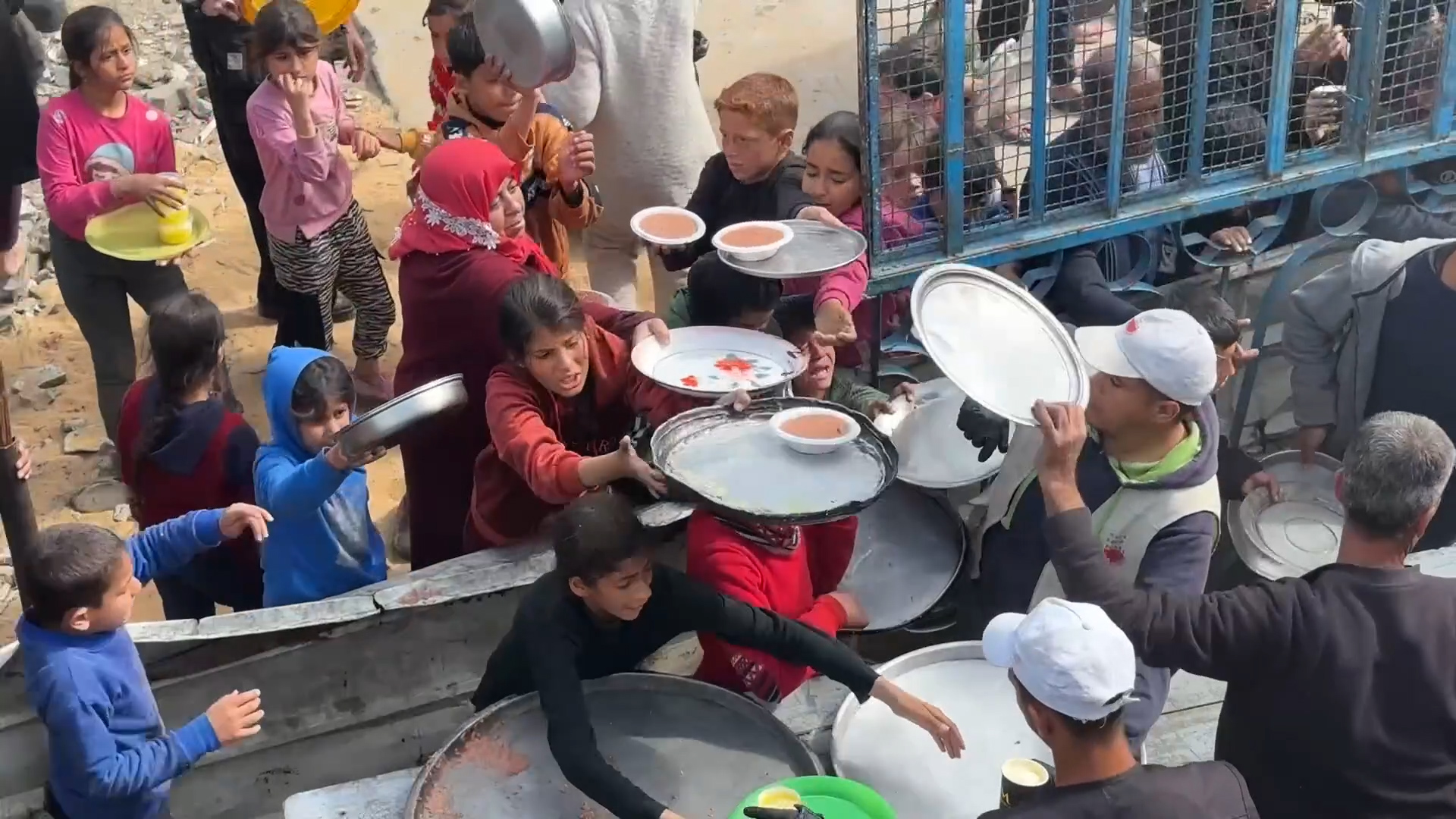 نازحون ينتظرون الحصول على طعام في غزة
