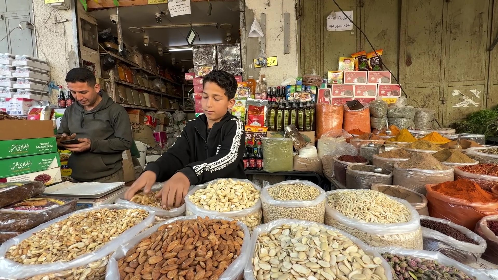 مواطنون يتجولون في سوق الزاوية بمدينة غزة