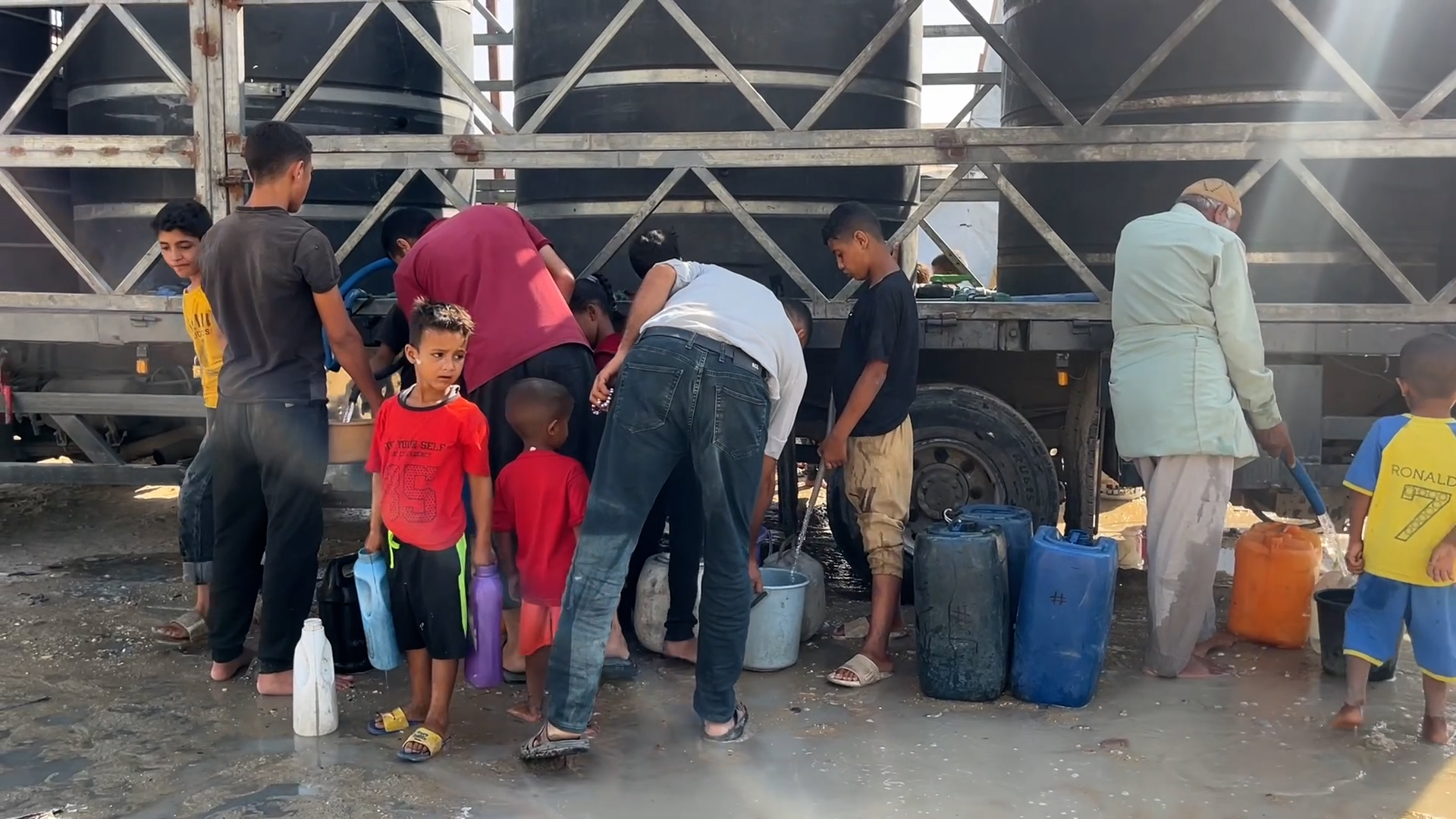 مواطنون ينتظرون الحصول على المياه في غزة