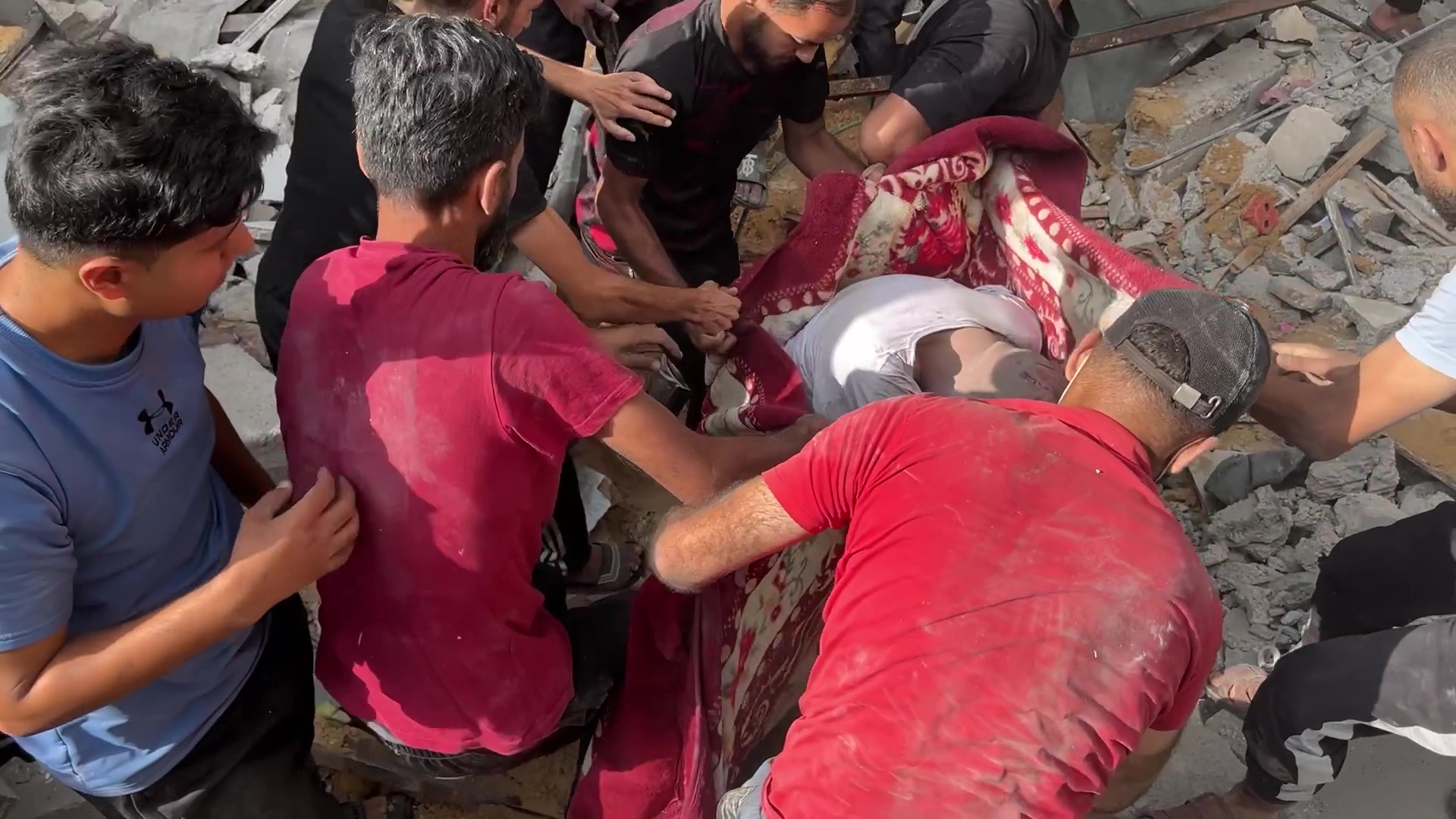 محاولات لانتشال شهداء في مخيم الشاطئ