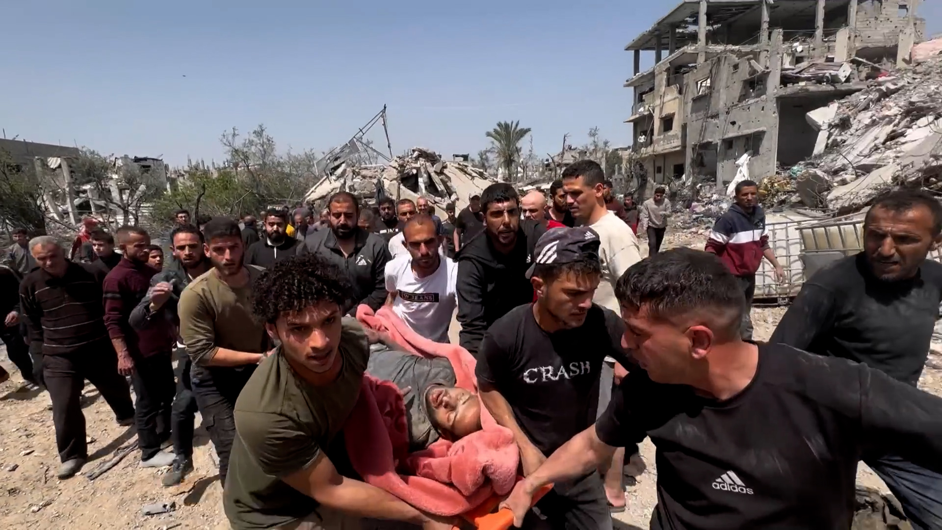 نقل شهداء وجرحى للمستشفى في دير البلح