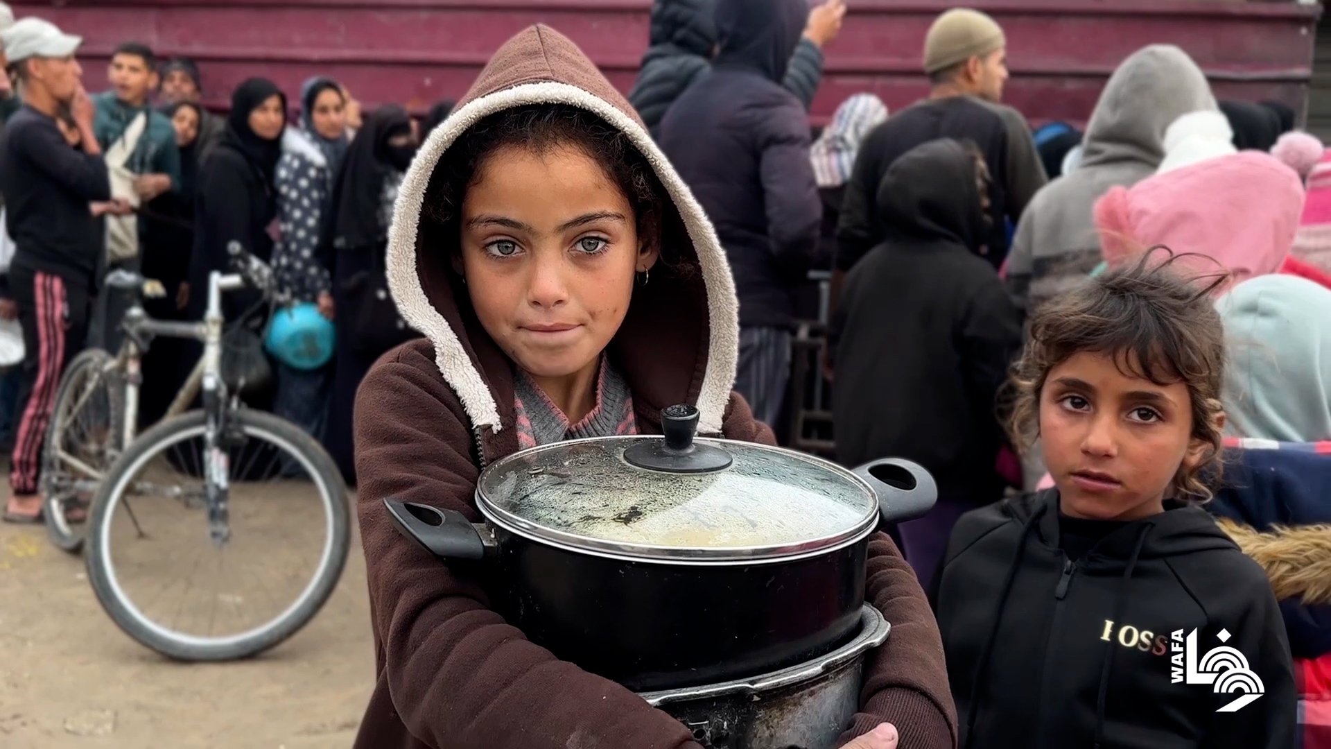 نازحون ينتظرون الحصول على طعام في خان يونس