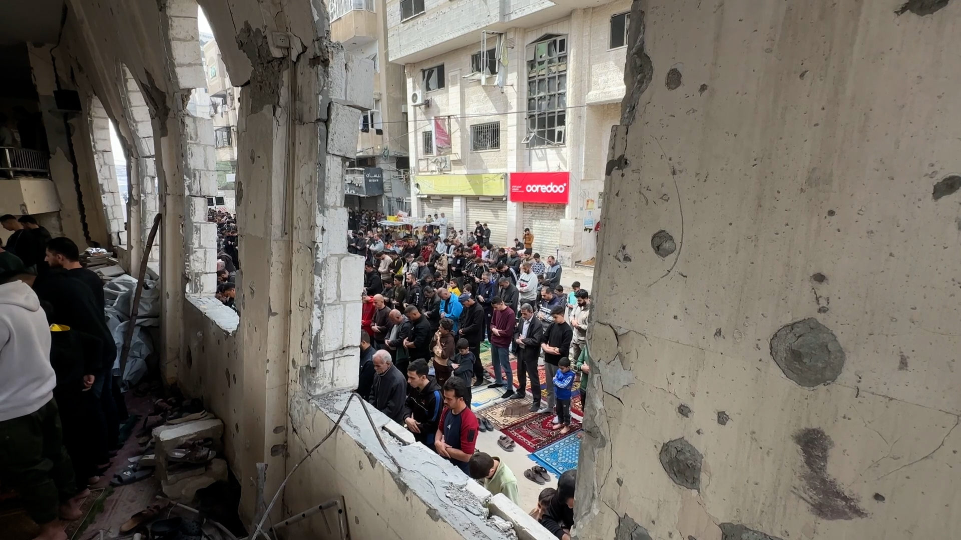 صلاة الجمعة على أنقاض مسجد مدمر في غزة
