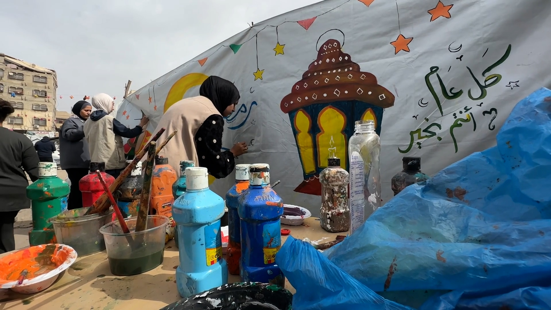 تزيين خيام النازحين في غزة ترحيباً برمضان