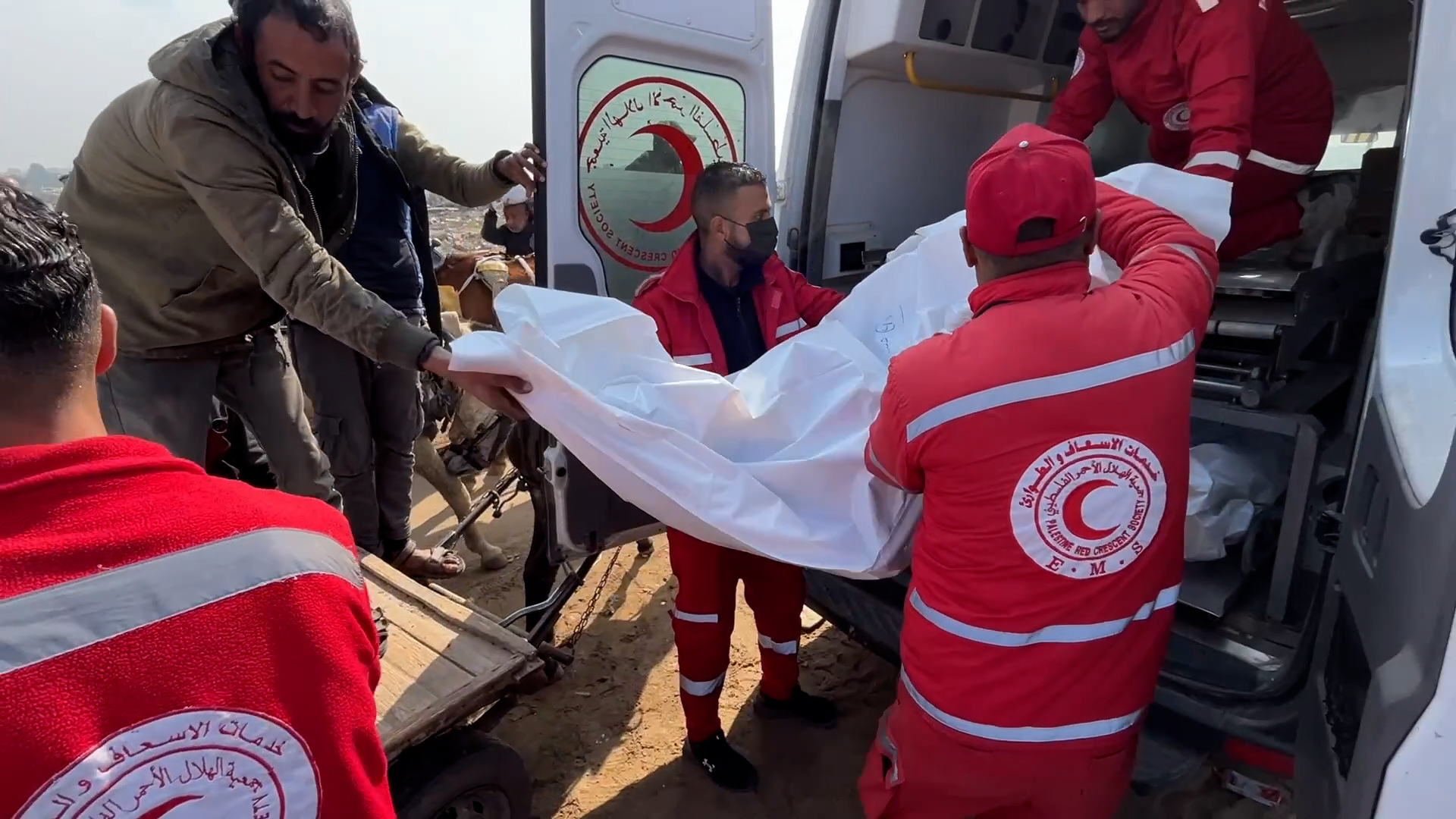 جمع رفات شهداء مجهولي الهوية جنوب غزة