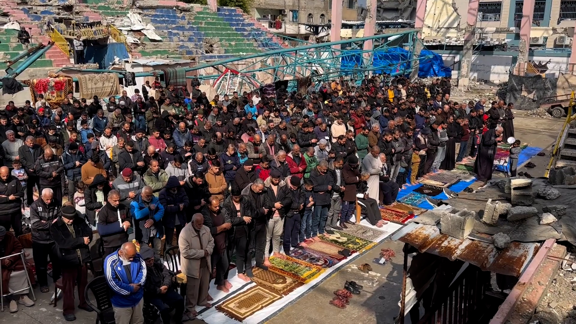 صلاة الجمعة في ملعب مدمّر في مخيم البريج