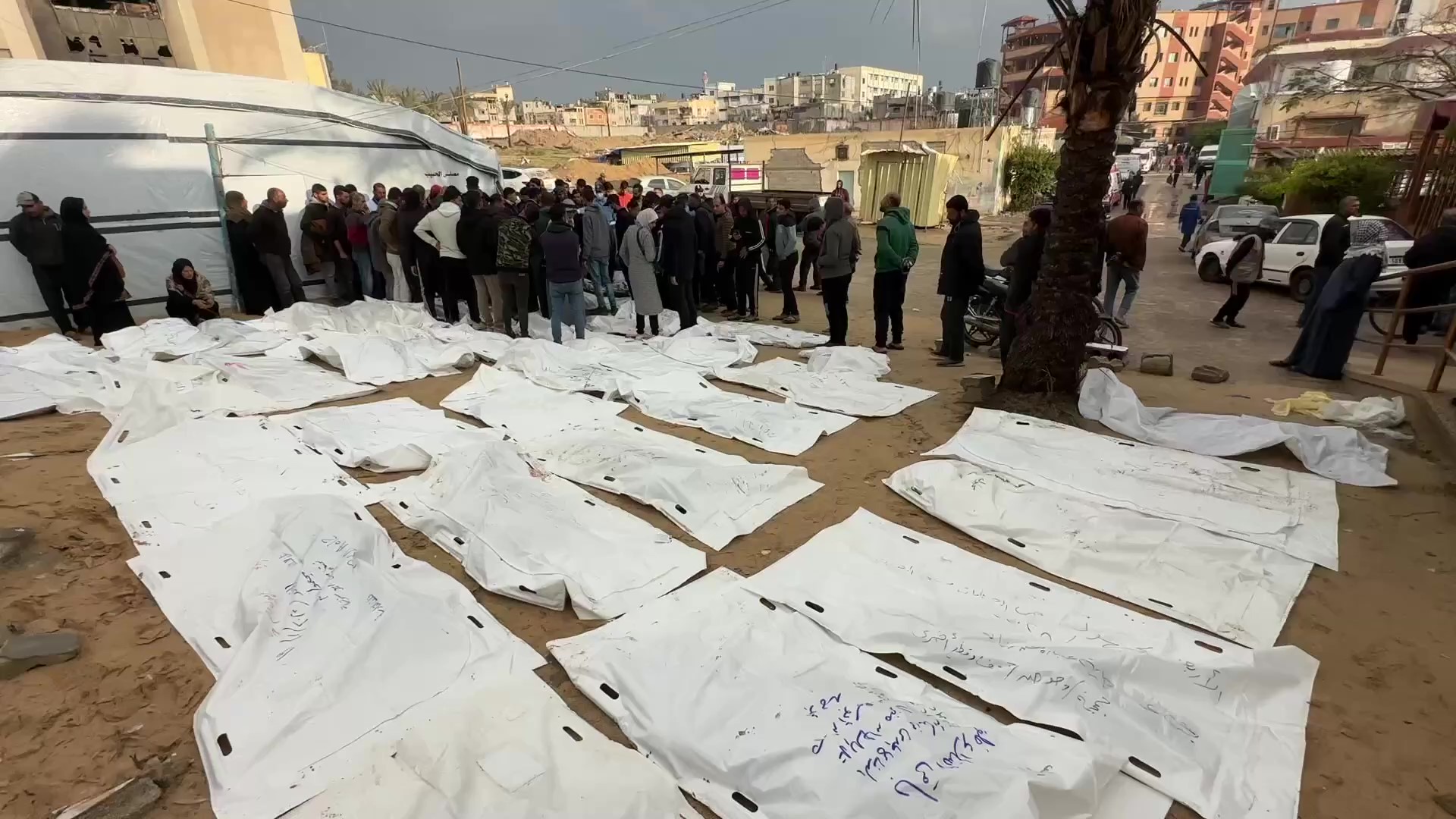 تشييع شهداء بعد انتشال جثامينهم في خان يونس