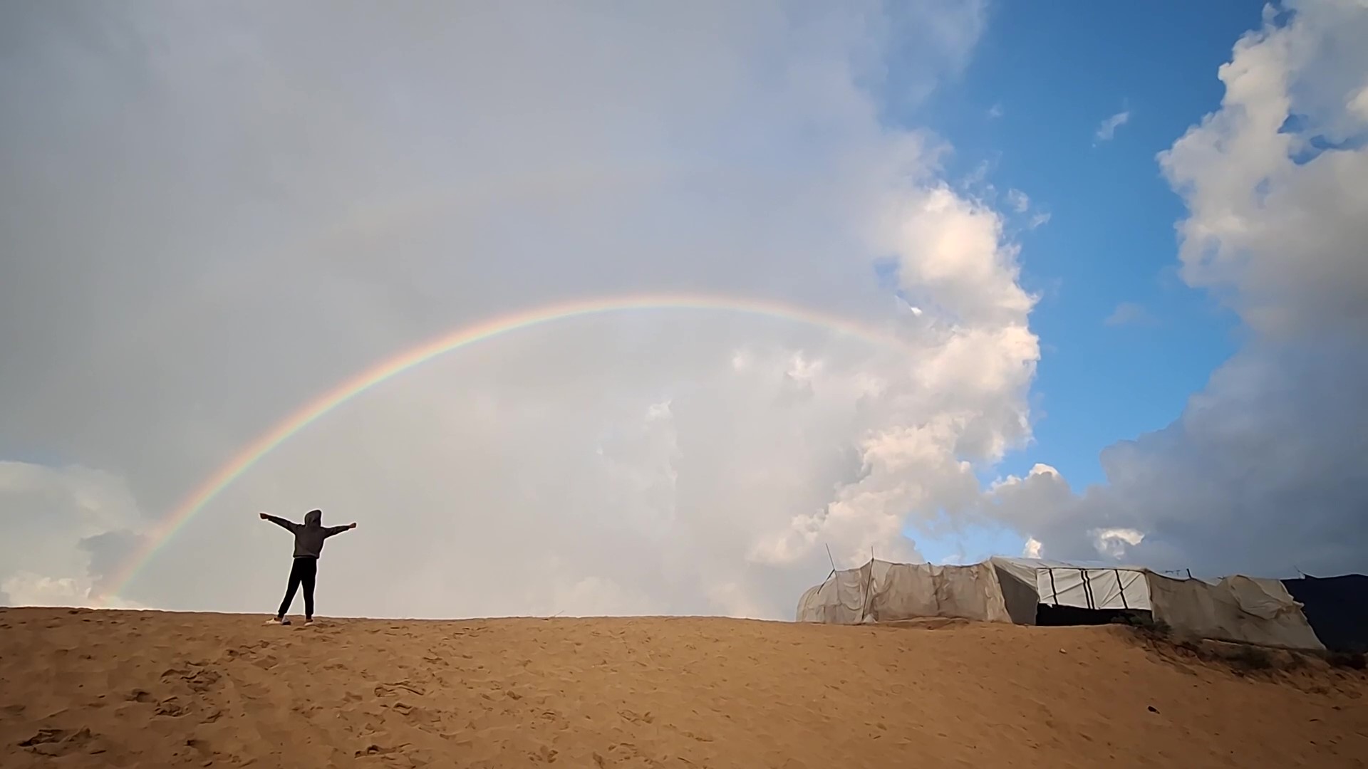 قوس قزح يظهر فوق خيام النازحين بدير البلح