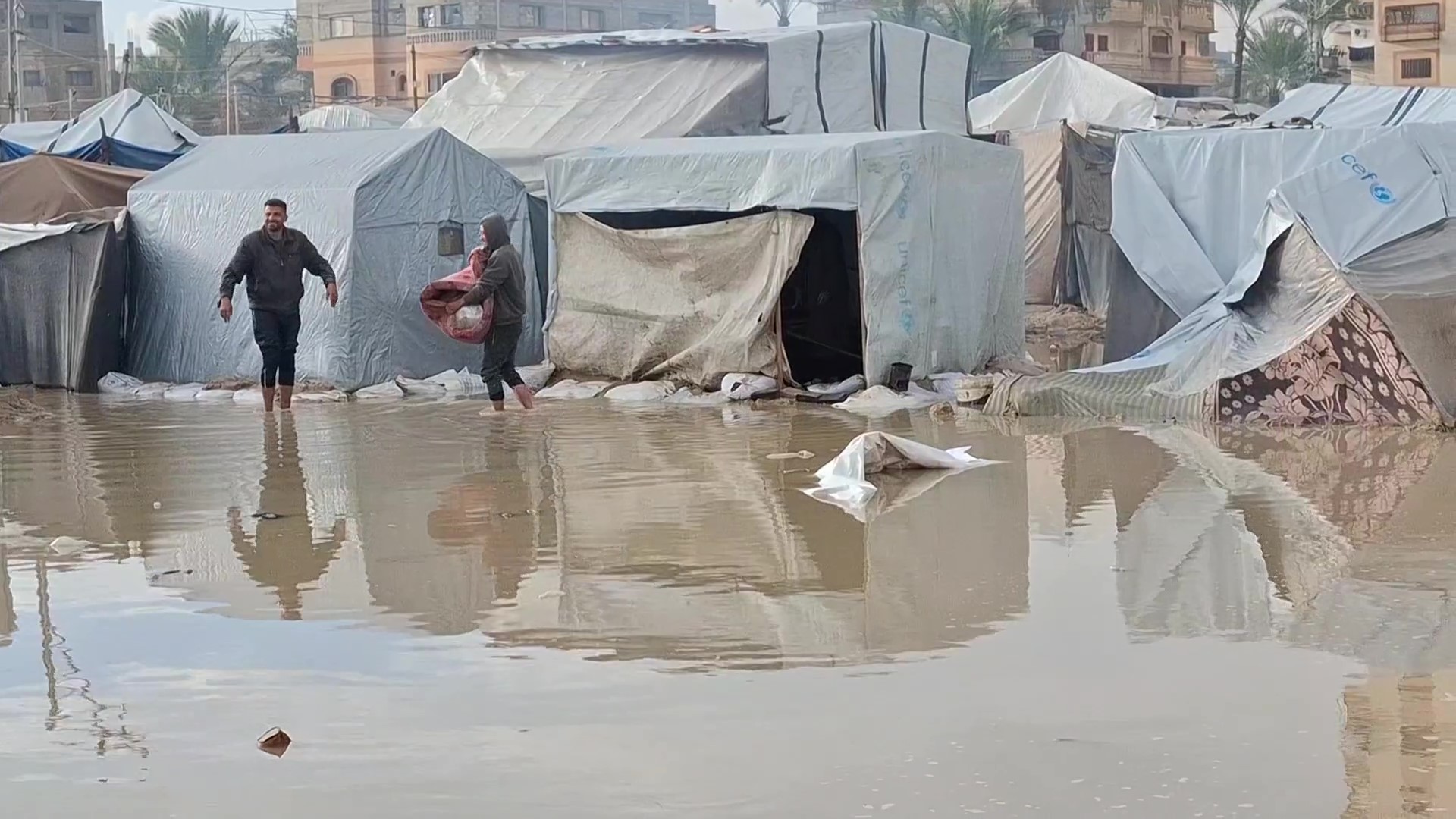 الأمطار تغرق خيام النازحين في دير البلح