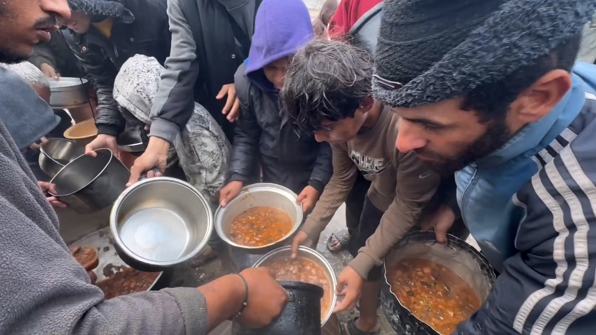تدافع للحصول على طعام في خان يونس