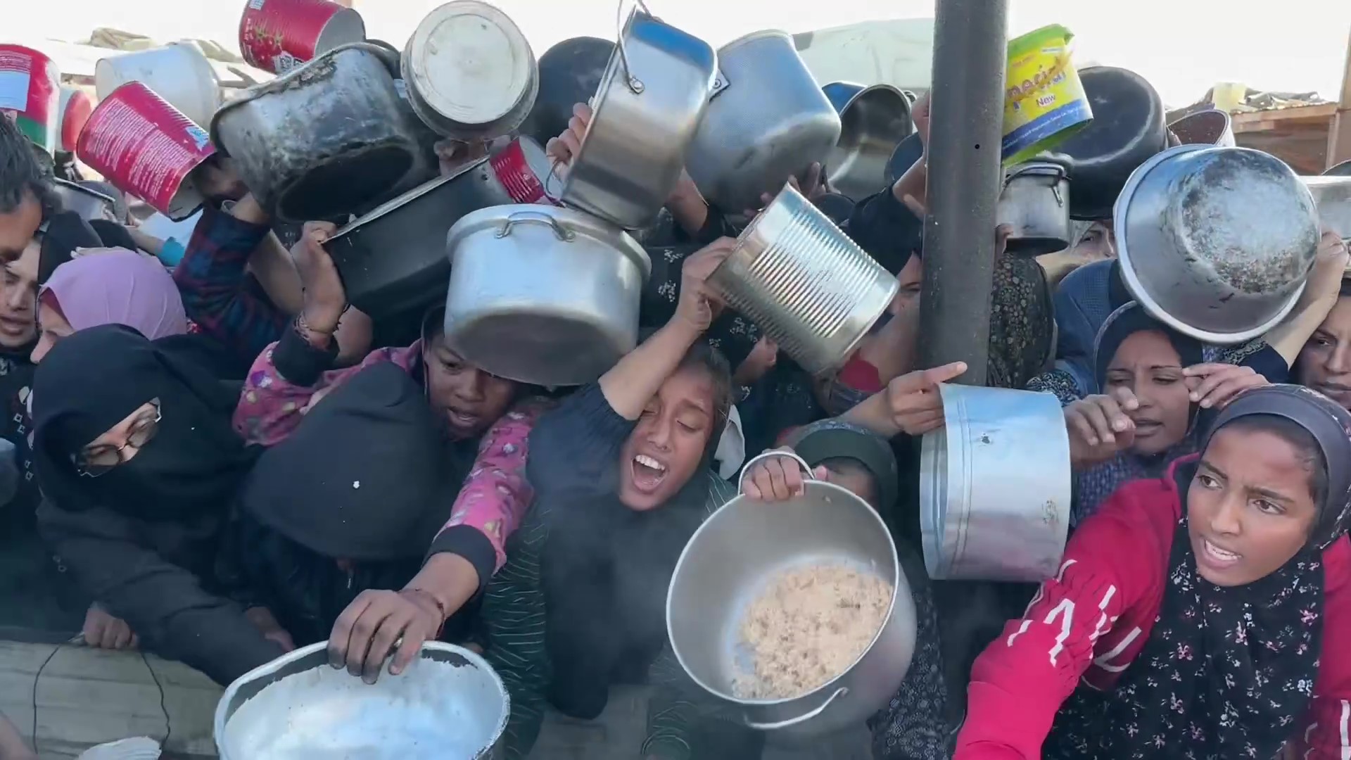نازحون يتزاحمون للحصول على طعام في دير البلح