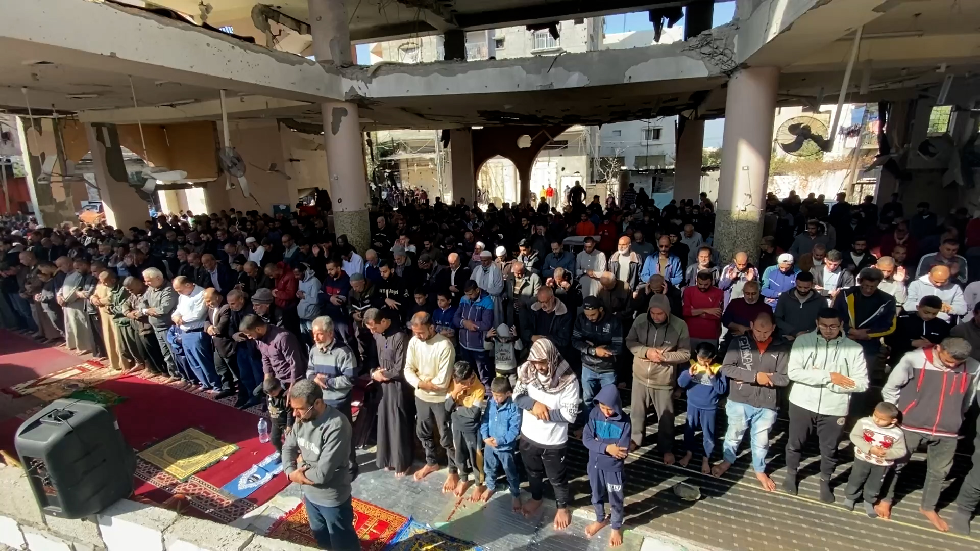 صلاة الجمعة في مسجد مدمّر بمخيم النصيرات