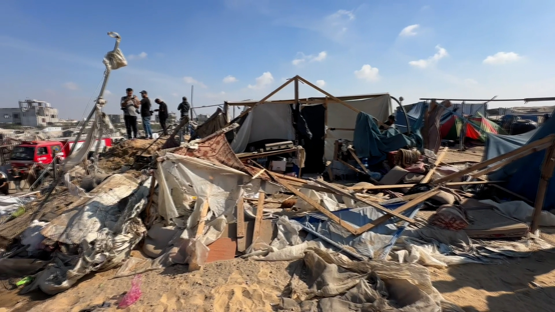 تفقد آثار القصف على خيام النازحين في خان يونس