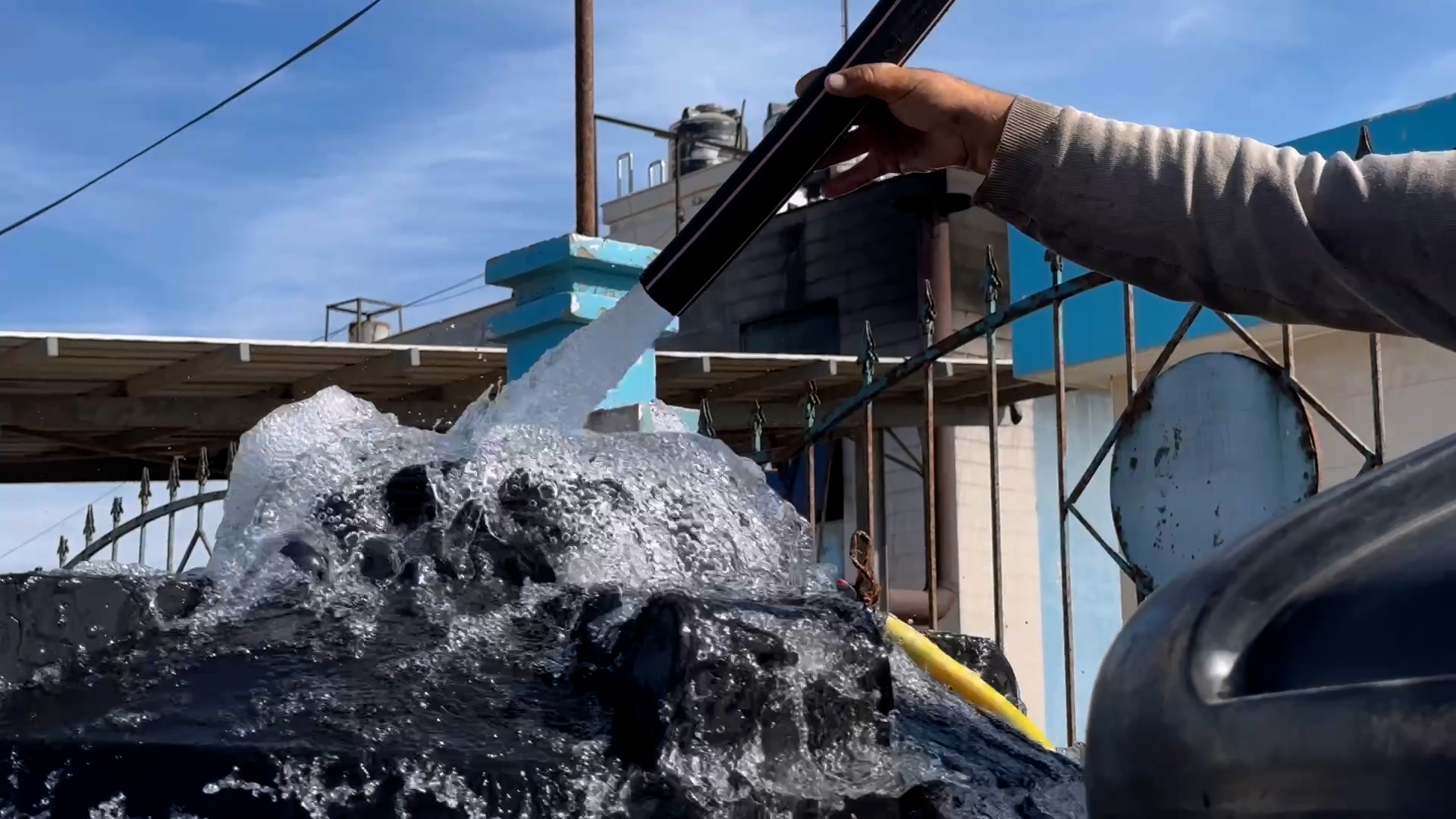 نازحون يتجمعون للحصول على مياه في دير البلح